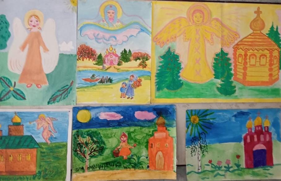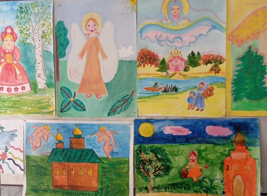 Для прихожан храма воспитанники школы подготовили выставку художественных работ.