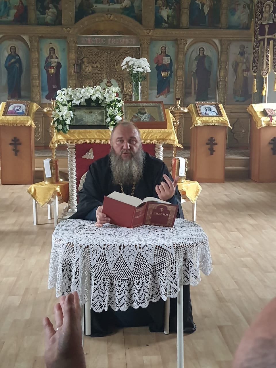 19 октября в храме Святителя Тихона Задонского п. Тарасовский прошла беседа по изучению Библии. Настоятель храма протоиерей Игорь Колистратов рассказал прихожанам в какой форме будут проходить беседы. Священник объяснил, почему каждому православному христианину необходимо изучать Священное Писание.