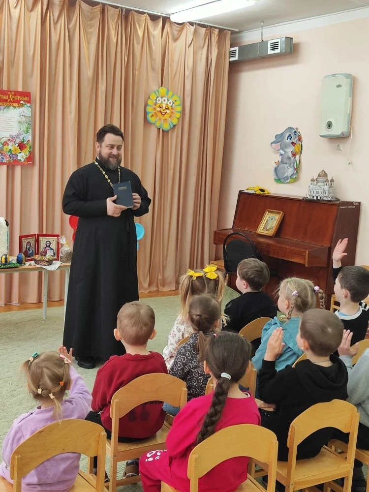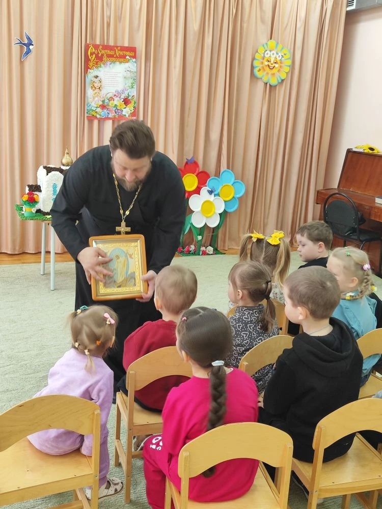 21 апреля 2026 года в городе Миллерово, в детском саду № 5, состоялась встреча воспитанников с иереем Симеоном Есиным. Беседа была посвящена светлому и радостному празднику — Пасхе Христовой.