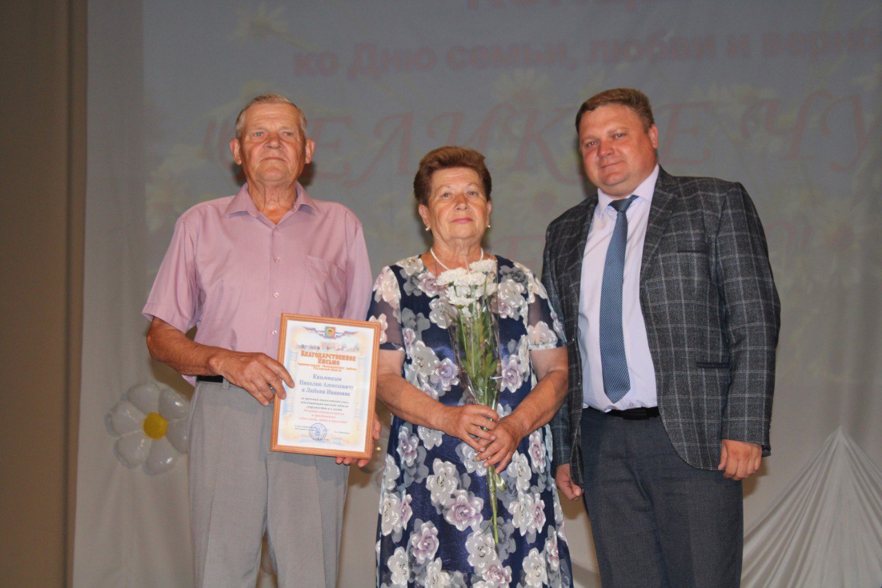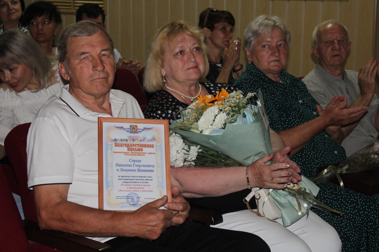 За прочный и многолетний союз, воплощающий высокие идеалы супружества, в честь 55-летия семейной жизни благодарственным письмом главы администрации Миллеровского района награждены: