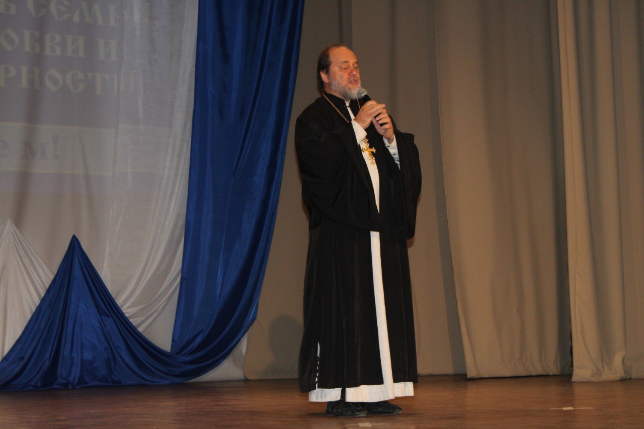 Награжденные супружеские пары, всех жителей города и района с Днем семьи, любви и верности поздравил благочинный Миллеровского церковного округа, настоятель Свято-Пантелеимоновского храма иеромонах Димитрий (Яроцкий).