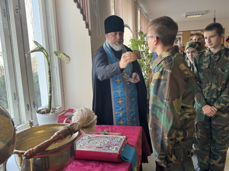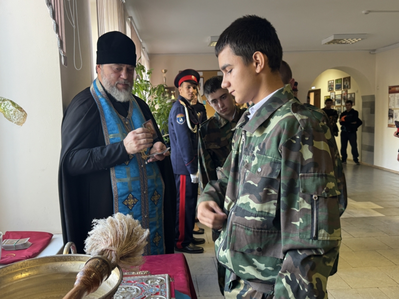 Духовный наставник иеромонах Димитрий обратился с назиданием к собравшимся о важности слова, которое может освящать и приносить скорби в жизни человека. После окропления святой водой священник благословил учащихся иконочками Богоматери.