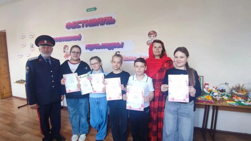 Гости праздника — по благословению настоятеля Донского храма, руководителя отдела по взаимодействию с казачеством Шахтинской епархии протоиерея Романа Амплеева, помощница настоятеля, старшая сестра милосердия Инна Викторовна Саханина, а также первый заместитель атамана городского казачьего общества «Новошахтинское» Анатолий Михайлович Ласткин — поделились тёплыми словами о Пасхе, добре и мире и вручили грамоты победителям фестиваля.