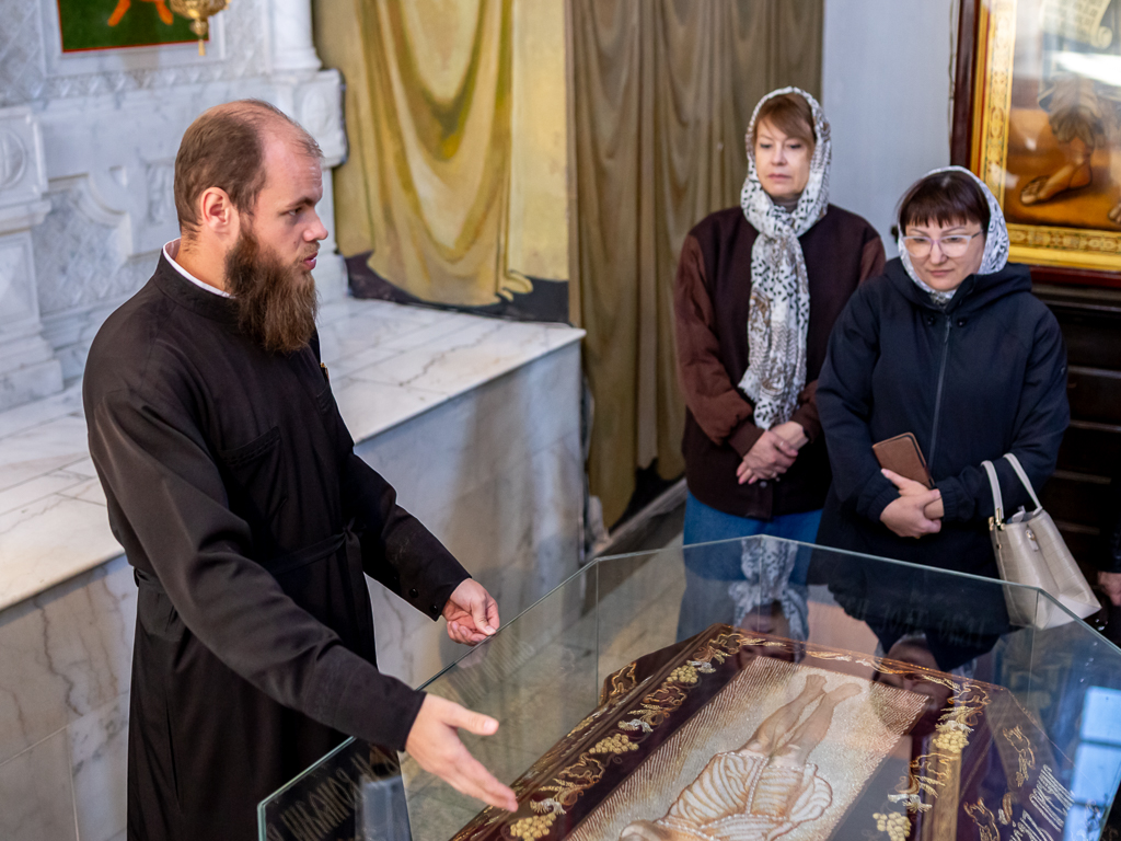 Экскурсию для гостей провел клирик Покровского кафедрального собора, помощник благочинного Александровск-Грушевского округа диакон Никита Осипов. Отец Никита доступно и интересно рассказал ребятам об устройстве православного храма, значении церковных символов и истории создания собора. Особое внимание было уделено главным святыням, которые особенно почитаются прихожанами.