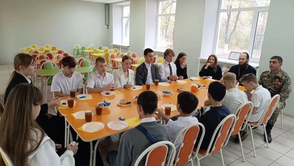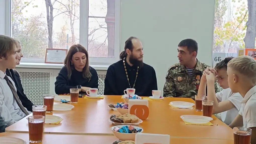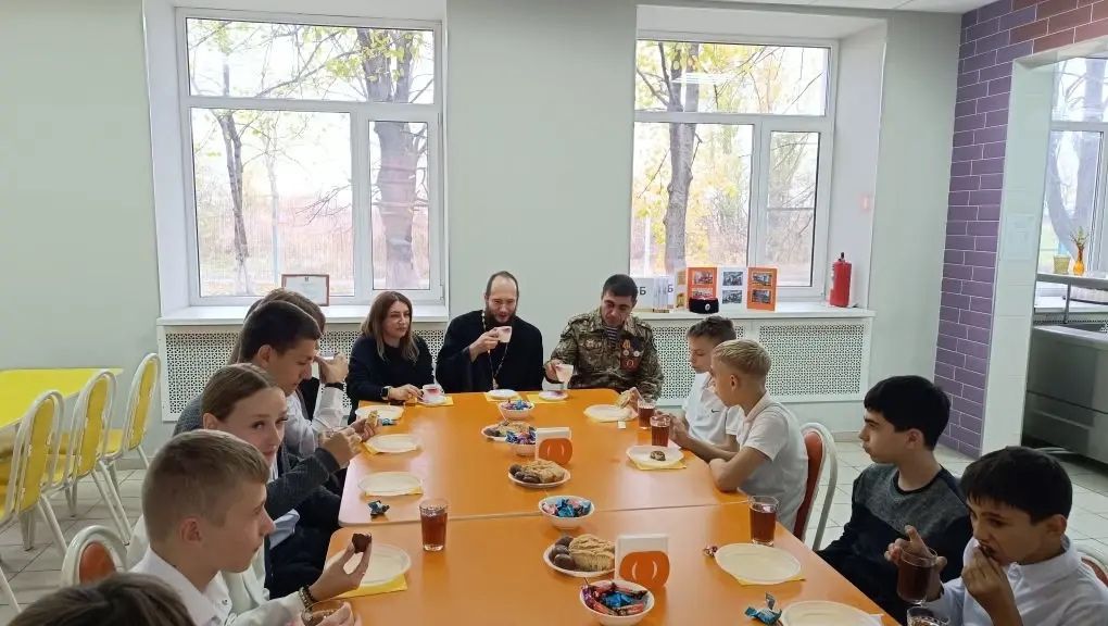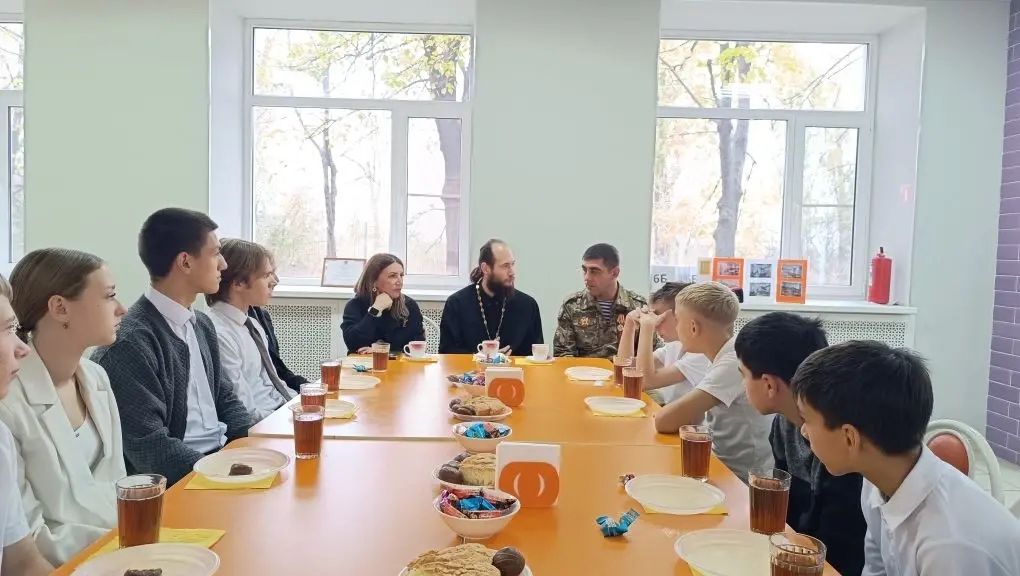 В неформальной обстановке чаепития учащиеся 7-11 классов получили возможность задать гостям волнующие их вопросы. Диалог затронул широкий круг тем: от источников нравственности в условиях войны и оценки современного вооружения до роли Церкви в помощи военнослужащим и вызовов, стоящих перед современной молодежью.
