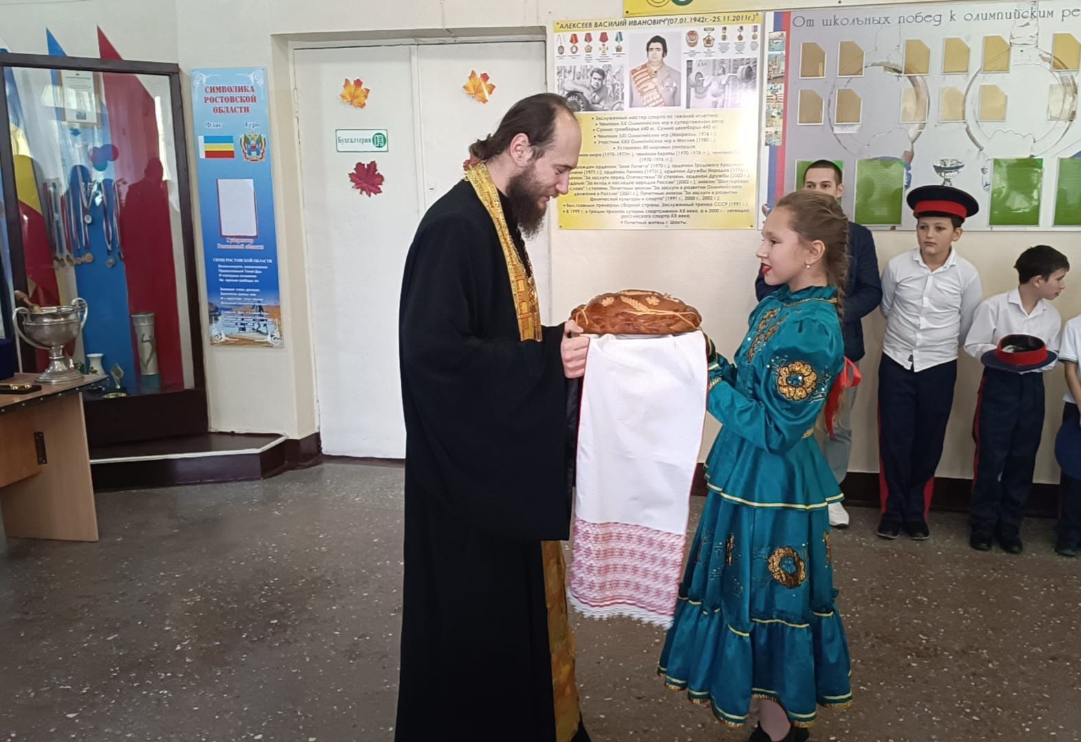 По окончании торжественной части по доброй казачьей традиции отцу Олегу был преподнесен символ гостеприимства и уважения — душистый каравай. Мероприятие стало ярким примером успешного сотрудничества образовательных учреждений, Русской Православной Церкви и казачества в деле духовно-нравственного и патриотического воспитания молодежи.