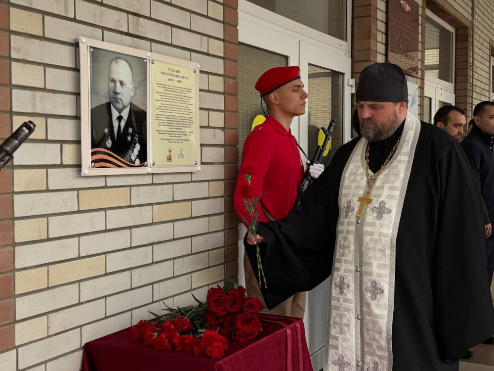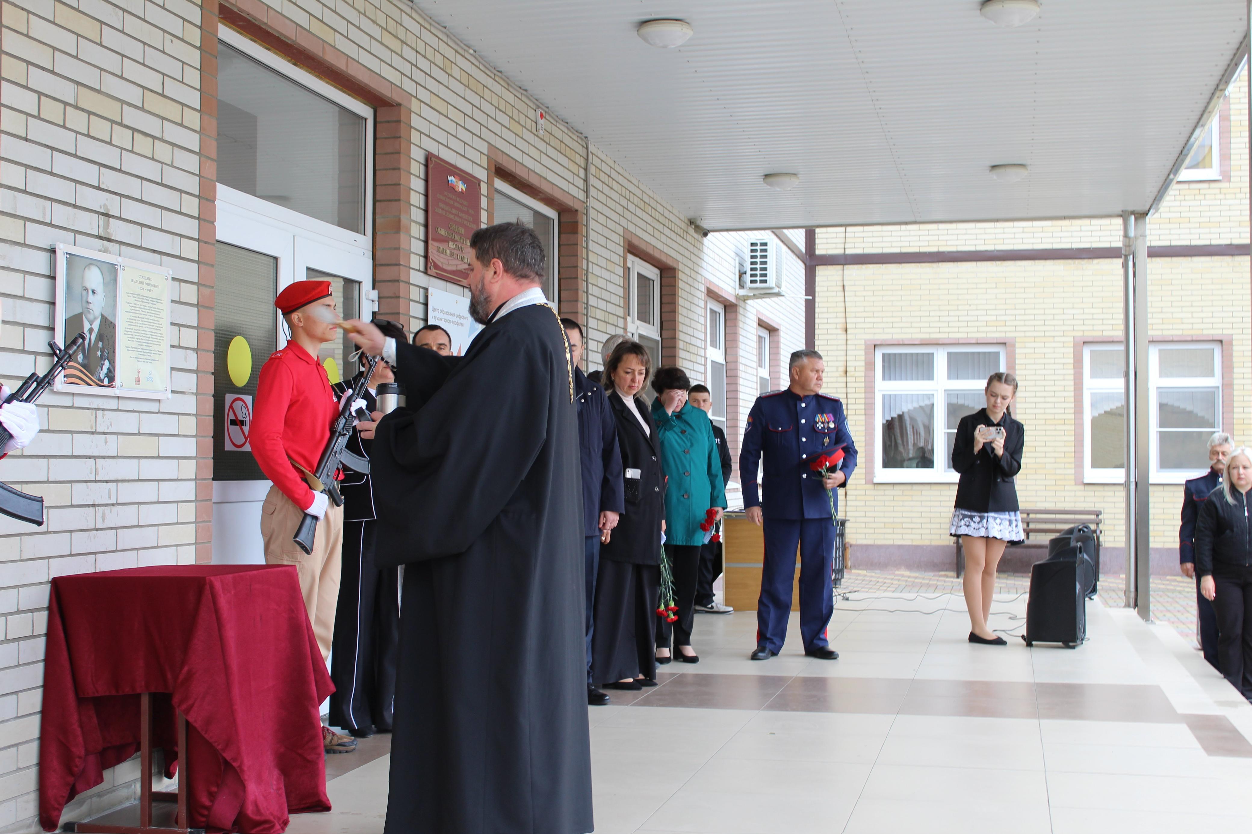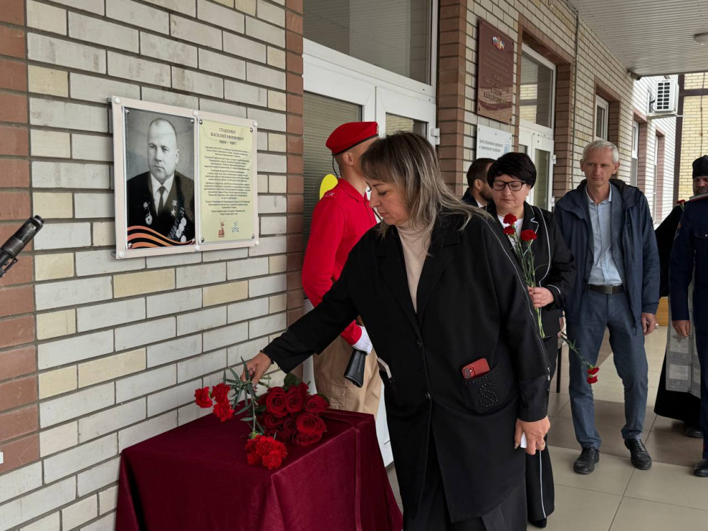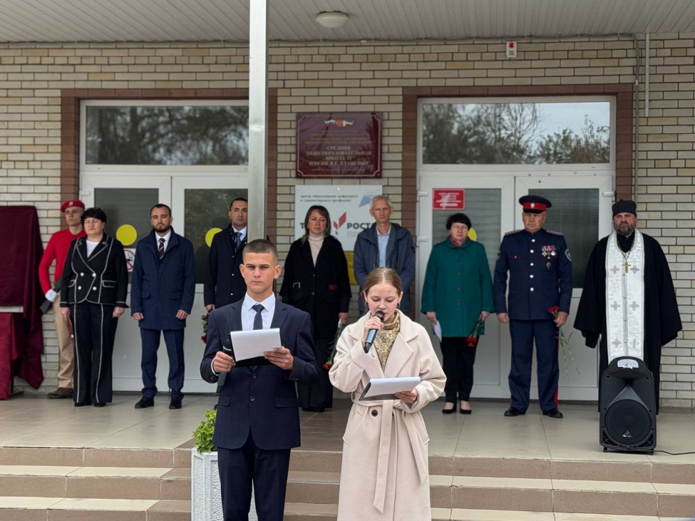 В станице Кривянской состоялось значимое событие — митинг, посвященный открытию обновленной мемориальной доски в честь Героя Советского Союза, ветерана Великой Отечественной войны Василия Ефимовича Стаценко, чье имя носит школа № 72.