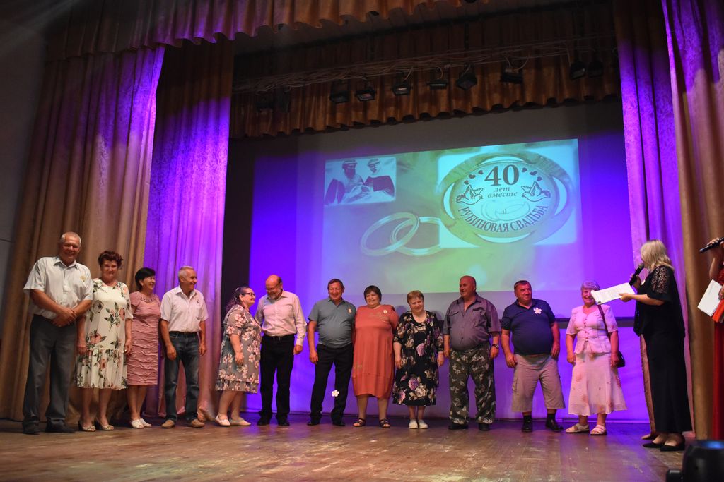В день памяти святых благоверных князя Петра и княгини Февронии Муромских чудотворцев в Районном Доме Культуры состоялось чествование семейных пар, празднующих юбилейные даты совместной семейной жизни в 2025 году. Семейным парам при входе дарили ромашки – символ праздника. В фойе гостей встречала фотозона и тематическая выставка рисунков, подготовленная воспитанниками Детской Школы Искусств.