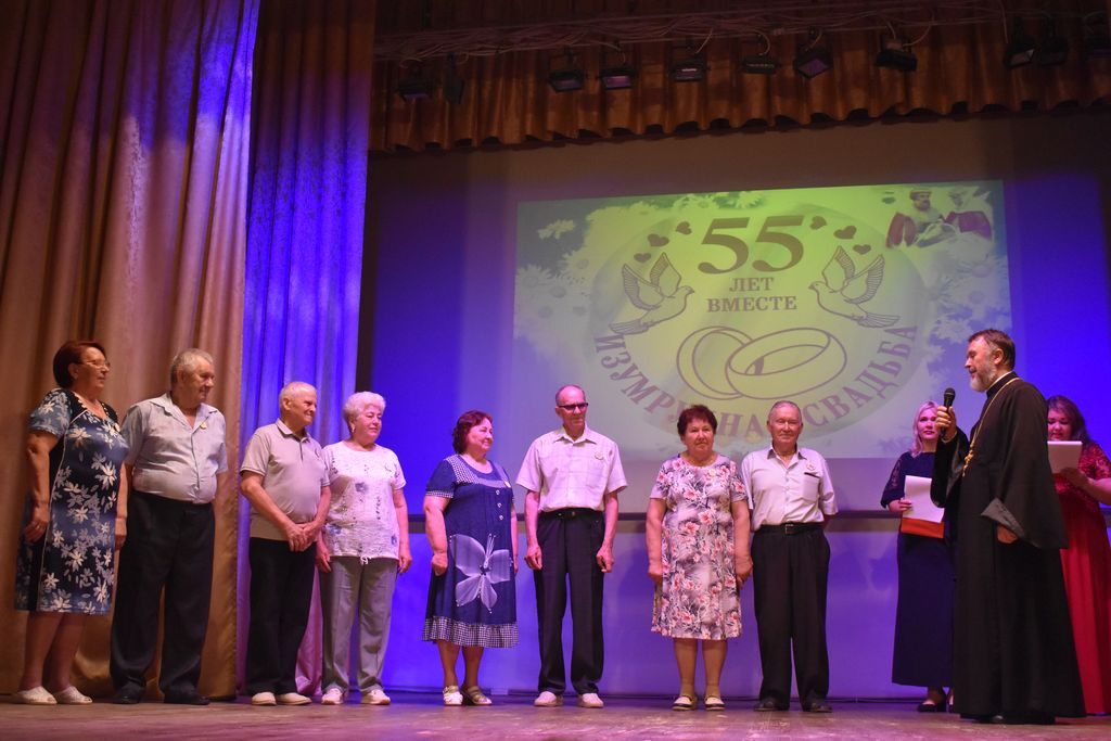Подарками и поздравлениями были отмечены семьи, празднующие в этом году юбилеи совместной семейной жизни. Всем юбилярам были вручены иконы и букеты цветов.
