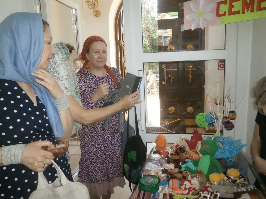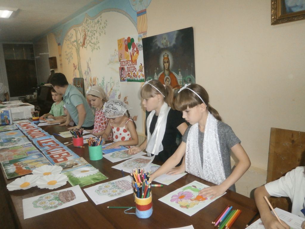 На творческом занятии дети, под руководством преподавателей прикладного творчества Шароновой Н.М.,Давидовой Н.Г. и Меняйловой М.Б., приняли участие в мастер-классе по изготовлению ромашек – символов семьи и работали над рисунками для городского фестиваля дошкольных и образовательных учреждений «Моя семья». Завершилась работа воскресного лагеря проведением ярмарки-милосердия «Семья – малая церковь» для прихожан, где дети и преподаватели предлагали сувениры-игрушки, изготовленные своими руками в ходе целого месяца работы воскресного лагеря.