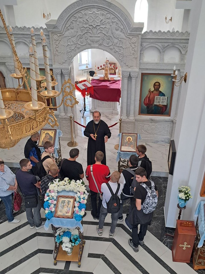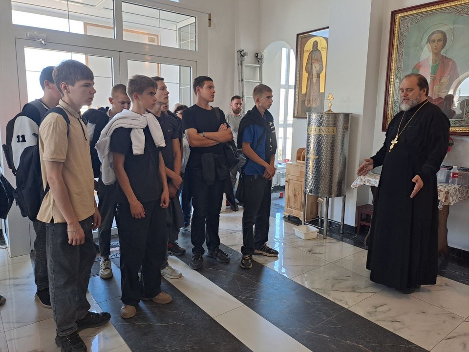 Воспитанники первого курса Миллеровского Казачьего Кадетского Техникума посетили с экскурсиями храм Великомученика и Целителя Пантелеимона. В общей сложности приход посетили около 150 человек из 6 групп.