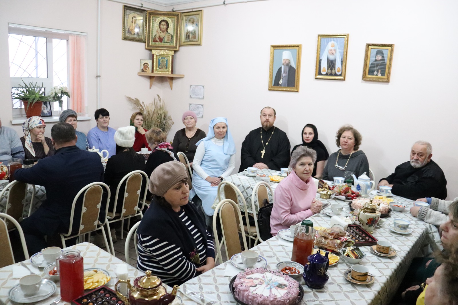 Все семьи получили подарки от Филиала Государственного Фонда поддержки участников специальной военной операции «Защитники Отечества» по РО. После чего прошли в трапезную храма, где сестры милосердия и сотрудники Донского храма подготовили для них чаепитие, на котором была продолжена духовная беседа. В ходе беседы священник пообещал всестороннюю помощь и поддержку семьям как погибших, так и ныне здравствующих воинов, находящихся в зоне СВО. С Анной Вячеславовной, сотрудниками УСЗН и сестрами милосердия провели мини-совещание по координации совместных действий и проведении мероприятий. На встрече присутствовало 36 человек.