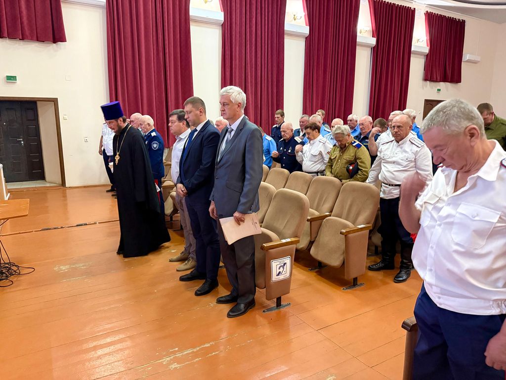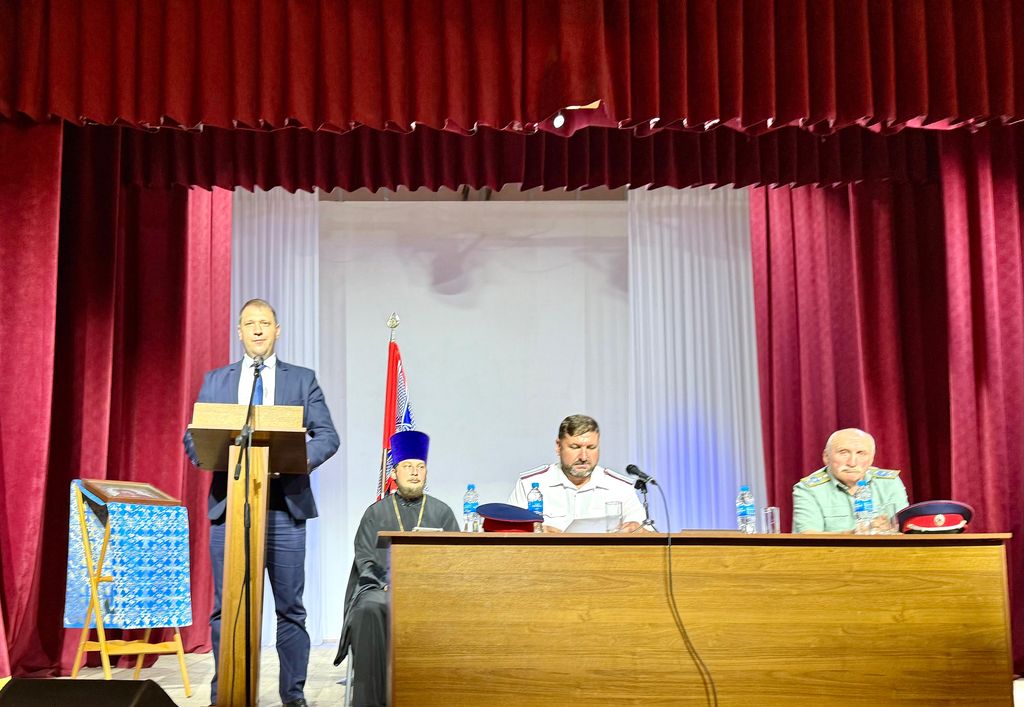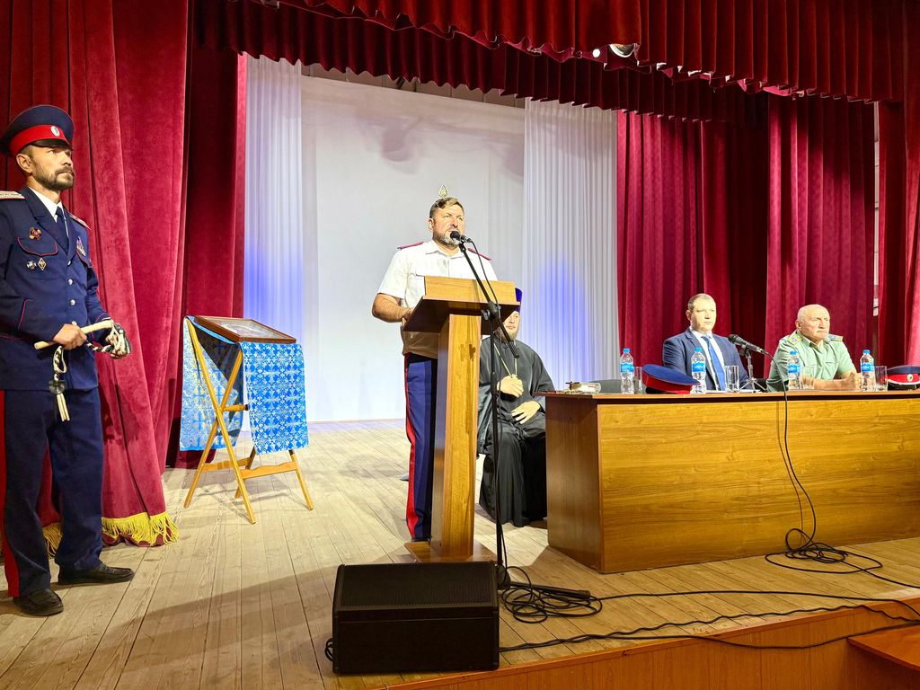 После отчета контрольно-ревизионной комиссии округа об итогах деятельности за 2024 и отчетный период 2025 года первый заместитель (товарищ) атамана округа Алейников М.М. рассказал казакам о проделанной казачьим обществом работе за последний год и поблагодарил казаков Сетраковского, Боковского и Вешенского юртов за активную работу с молодежью.