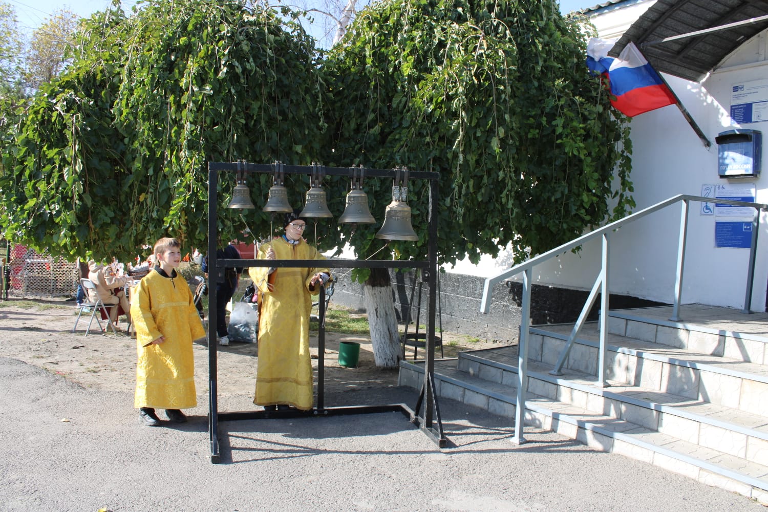 Украшением праздника стала передвижная звонница храма Архангела Михаила п. Каменоломни. По благословению благочинного приходов Нижнедонского округа мастер-класс по колокольному звону организовали юные звонари и члены православного семейного клуба «Верность» храма Архангела Михаила.
