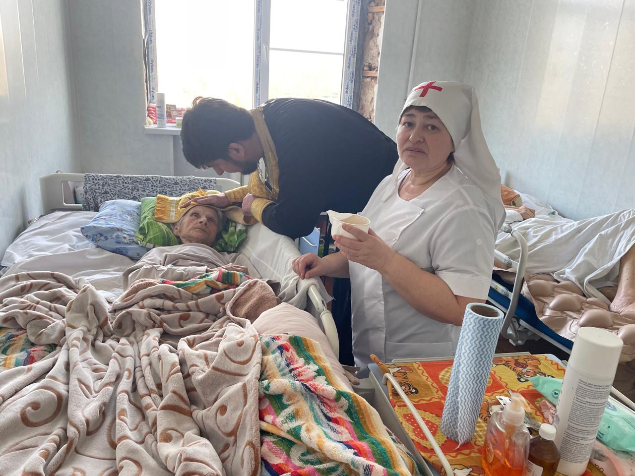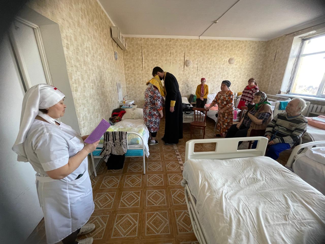 Накануне сестры совершили обход палат, выявив желающих принять участие в святых таинствах Исповеди и Причастия. Утром настоятель Матронинского храма города Донецка протоиерей Александр Барановский посетил неврологическое отделение. Сестры с утра приготовили всех желающих, вычитав необходимое молитвенное правило. Далее священник причастил святых Христовых Тайн 12 человек.