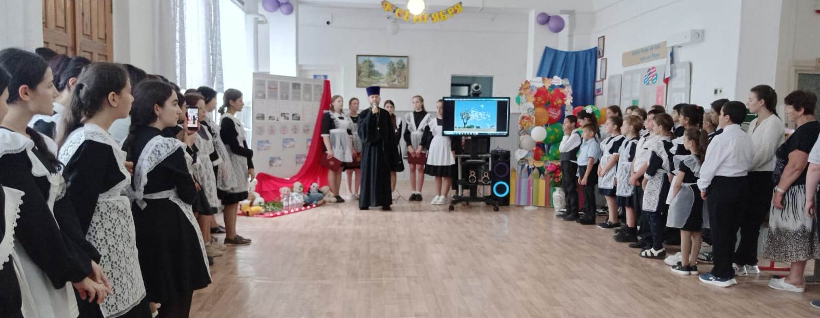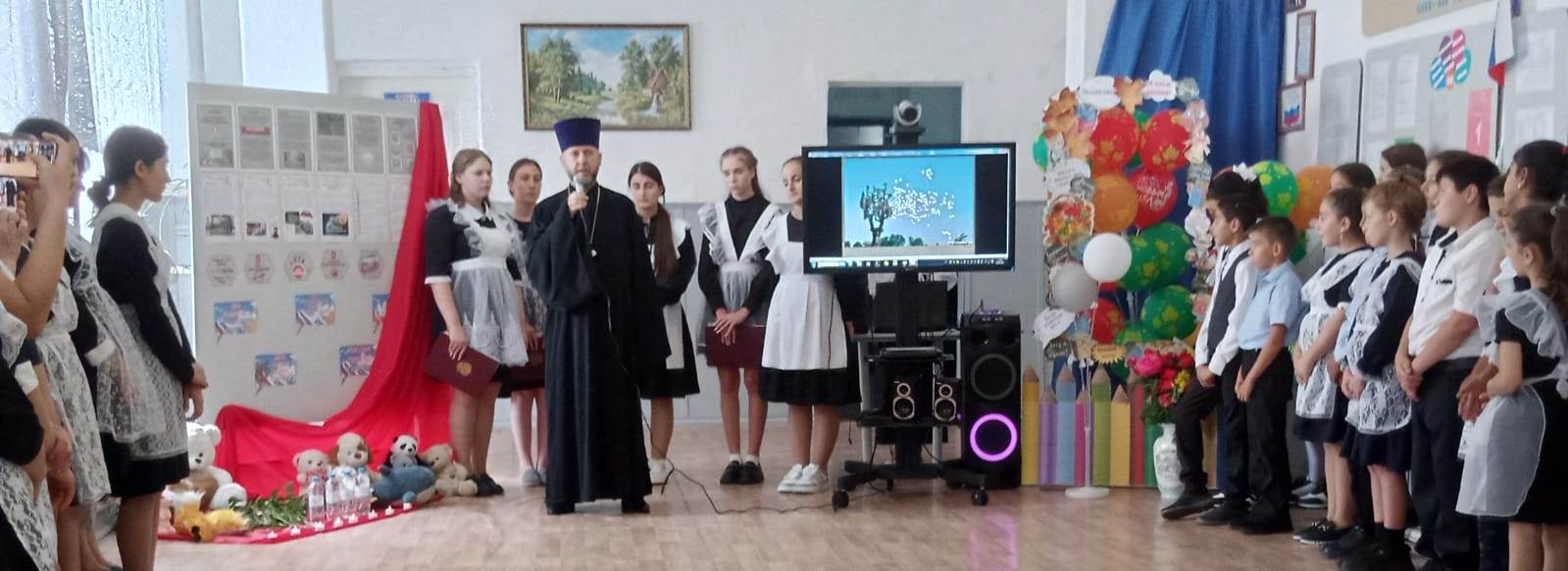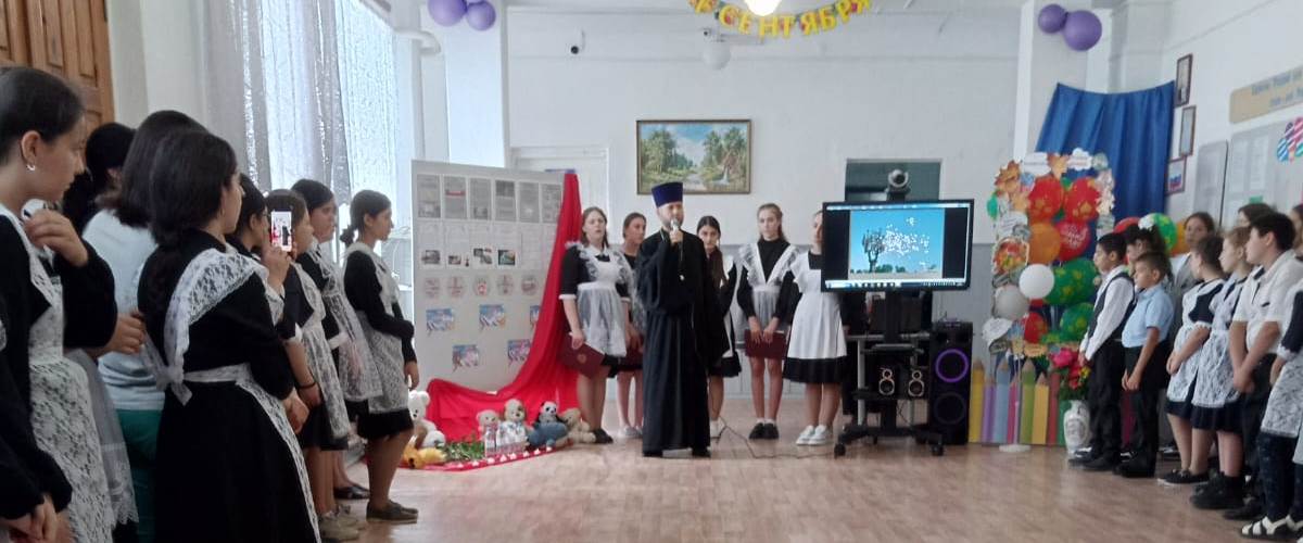 В мероприятии принял участие настоятель храма святого преподобного Серафима Саровского п. Отрадный протоиерей Роман Мясников, который поздравил присутствующих с началом учебного года, пожелал помощи Божией в учении и воспитательном процессе школьников. Священник подчеркнул важность понимания добра и зла и необходимость воспитания подрастающего поколения в духе милосердия и солидарности.