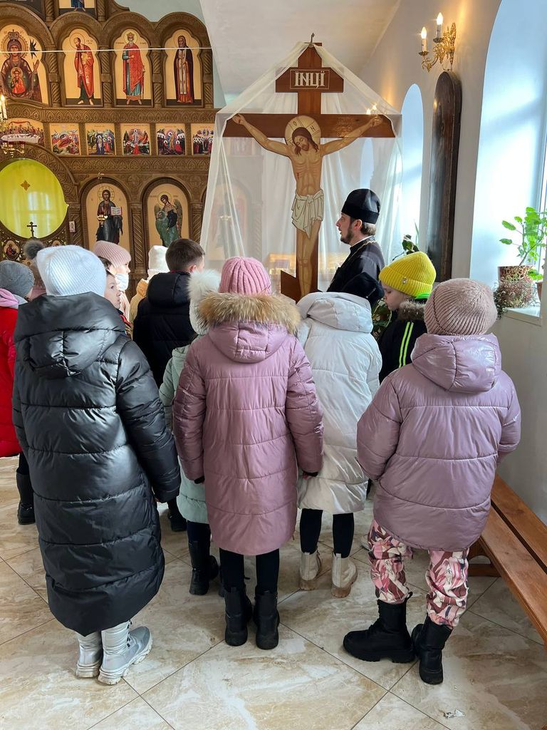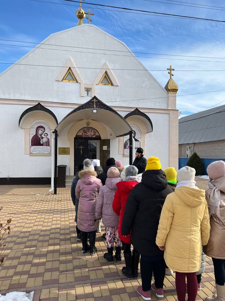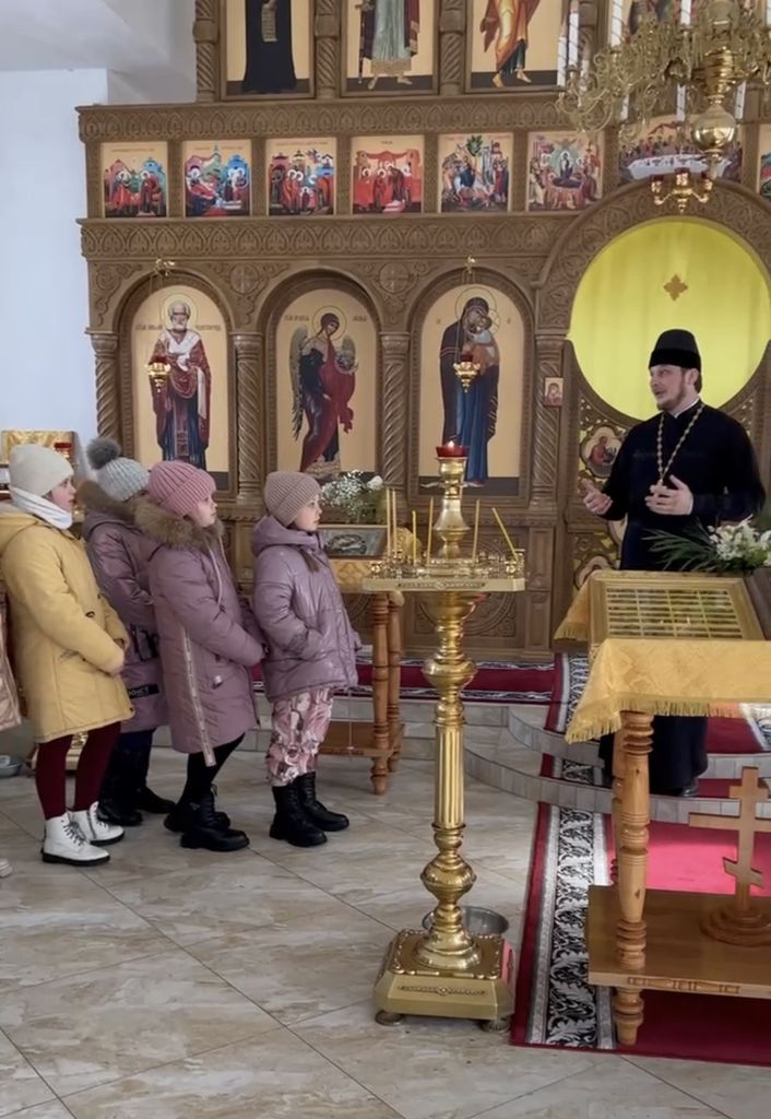 Настоятель храма Иоанна Предтечи ст. Боковской иерей Александр Левчик провел открытый урок по внутреннему устройству православного храма с учениками детского казачьего ансамбля «Православный Дон».