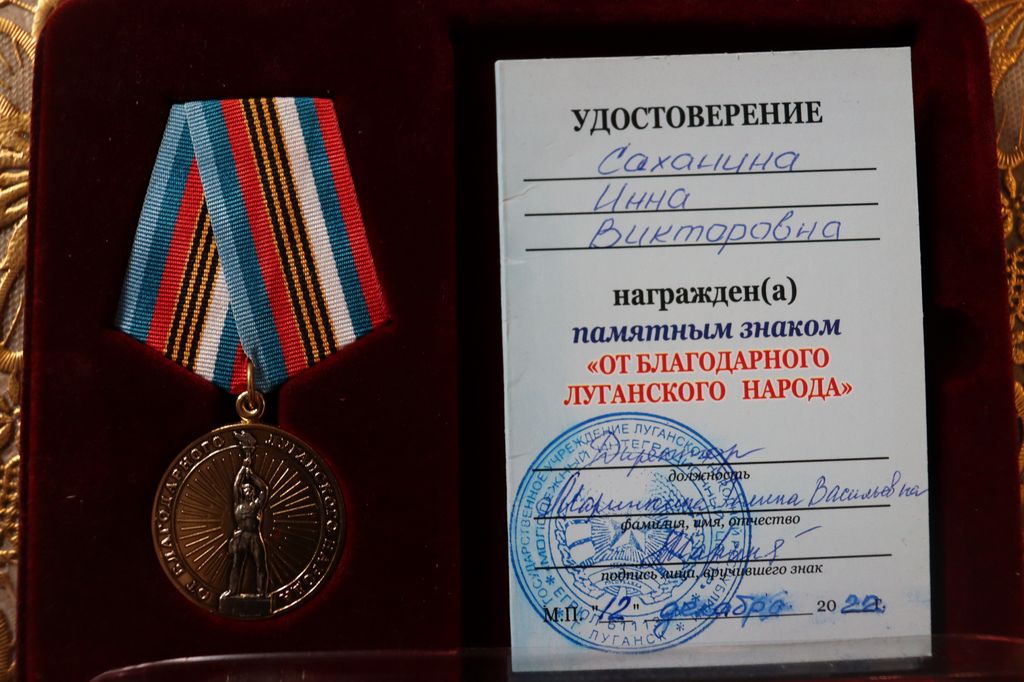 Так же памятный знак «От благодарного Луганского народа» вручен помощнику благочинного Саханиной И.В.