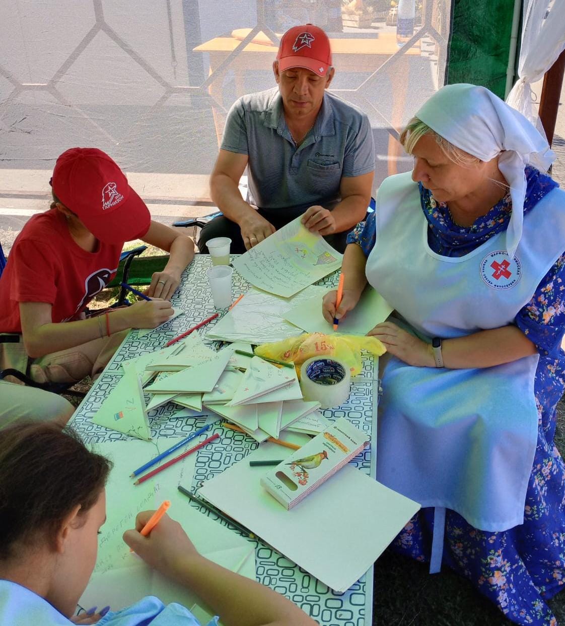 Сестры Марфо-Мариинского сестричества храма Архистратига Михаила п. Каменоломни при формировании адресных гуманитарных грузов, по возможности, стараются передать военнослужащим также и детские письма.