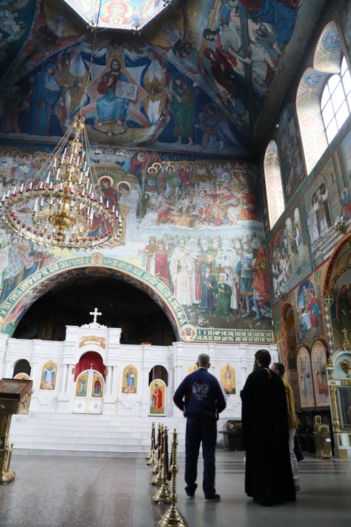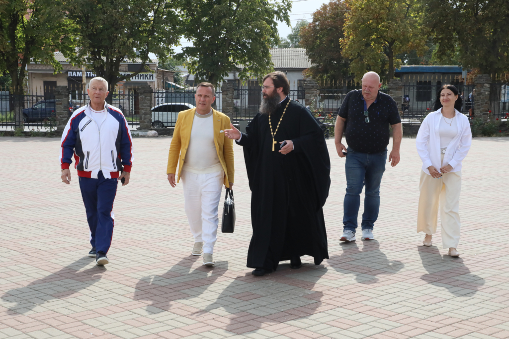 Встретив высоких гостей, иерей Александр ознакомил их с историей главного храма Шахтинской епархии и его святынями. Также рассказал о работе по духовному и патриотическому воспитанию православной молодежи и детей, которая проводится при Покровском соборе, духовно-просветительском центре и воскресной школе «Покров».