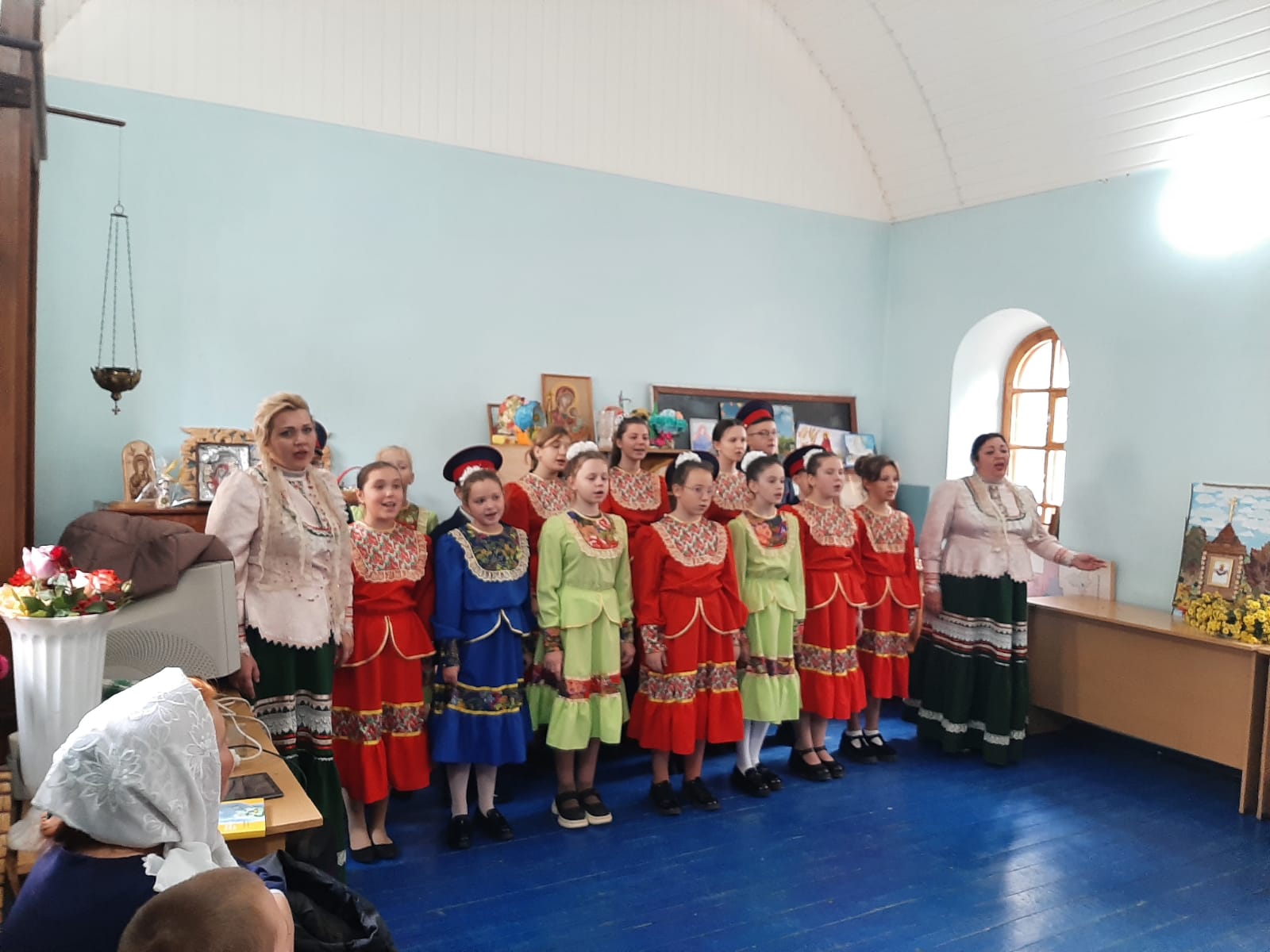 На территории храма Святителя Николая после воскресной Божественной литургии состоялся Покровский фестиваль, в котором приняли участие воспитанники воскресной группы прихода, учащиеся Багаевской средней общеобразовательной казачьей школы №2 и Багаевской детской школы искусств.