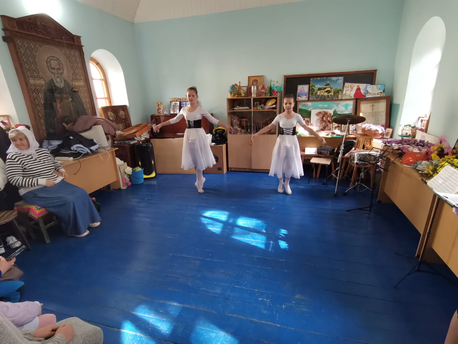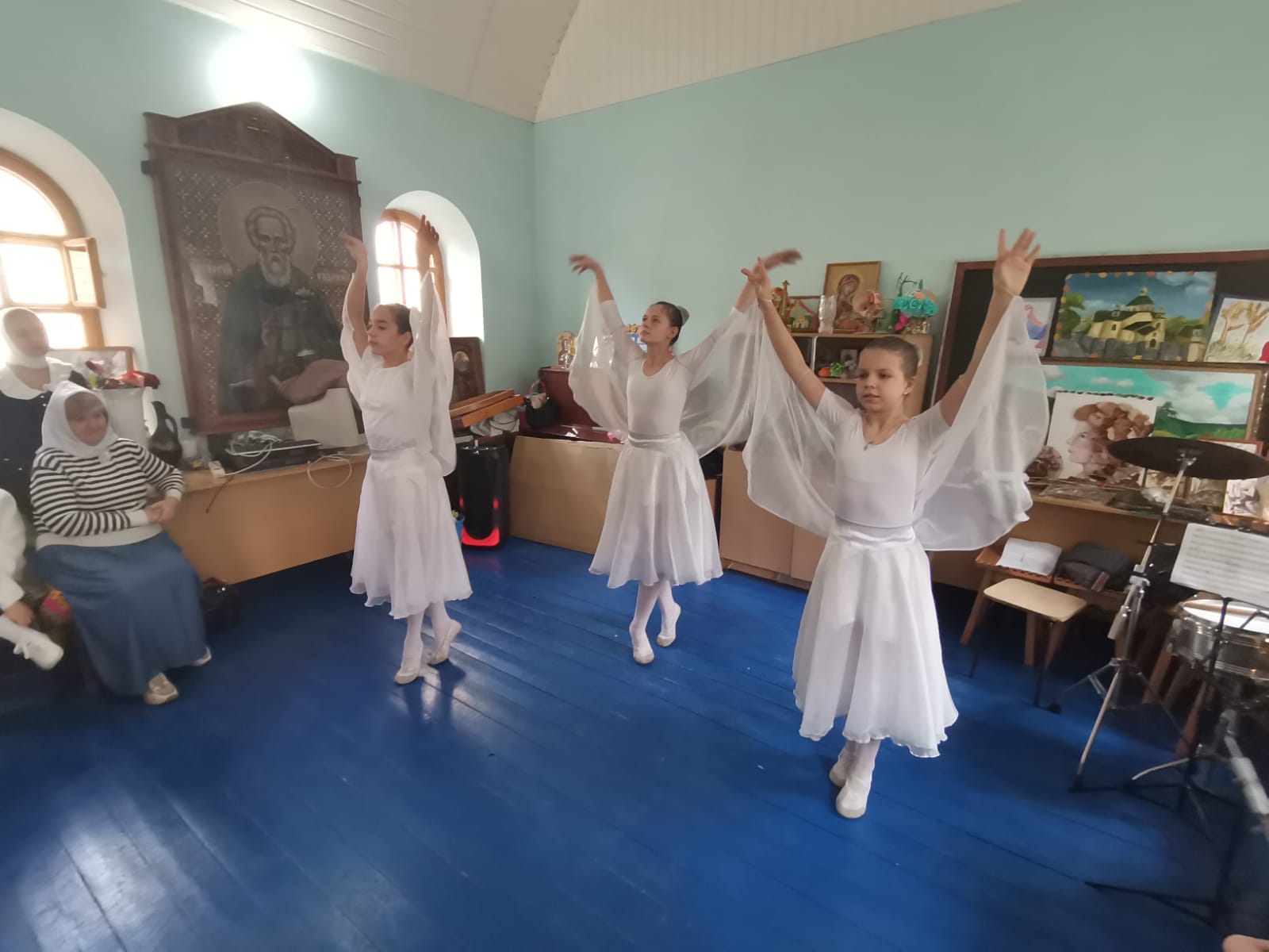 По завершении выступлений, участникам и их преподавателям была предложена праздничная трапеза, кулинарные блюда, подготовленные прихожанами и родителями учащихся. Затем, совместными усилиями, были собраны цветочные букеты, которые украсили икону праздника в храме.