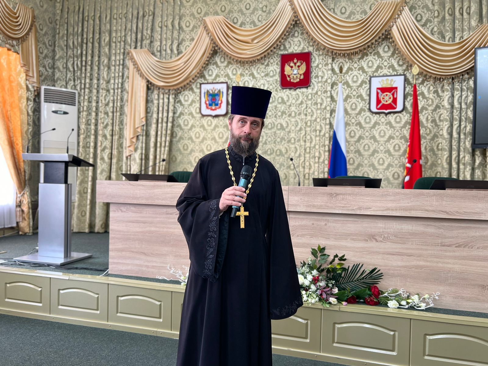 К участникам встречи обратился благочинный приходов Нижнедонского округа протоиерей Сергий Яценко. Он привел всем собравшимся слова святителя Филарета Московского, которому суждено было стать первым, кто дерзнул осмыслить значение тех великих и потрясающих событий.