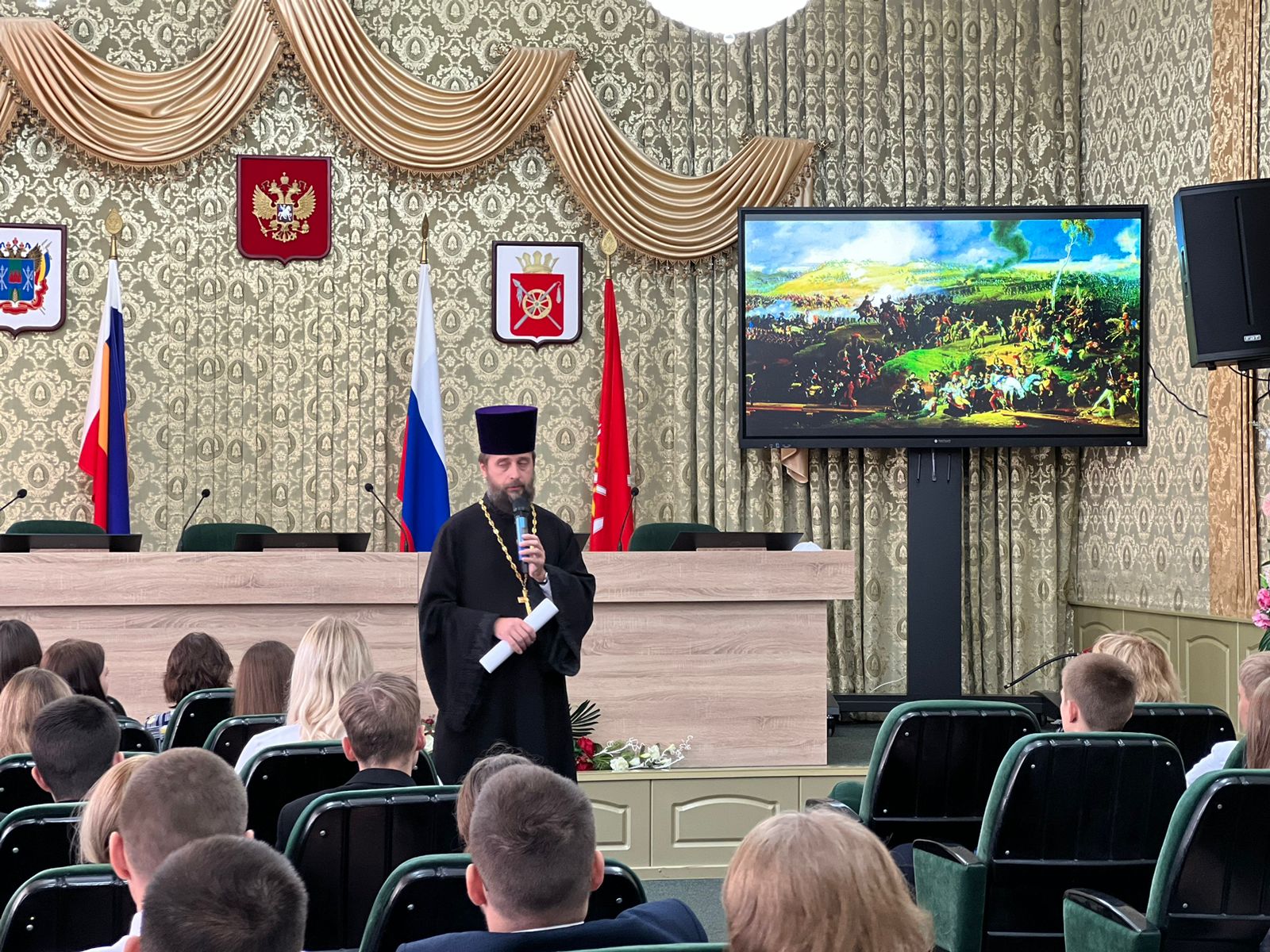 Священник привел исторические параллели с современными событиями и призвал ребят помнить свою историю и любить свое Отечество.