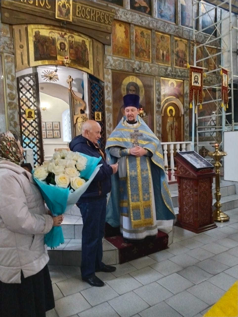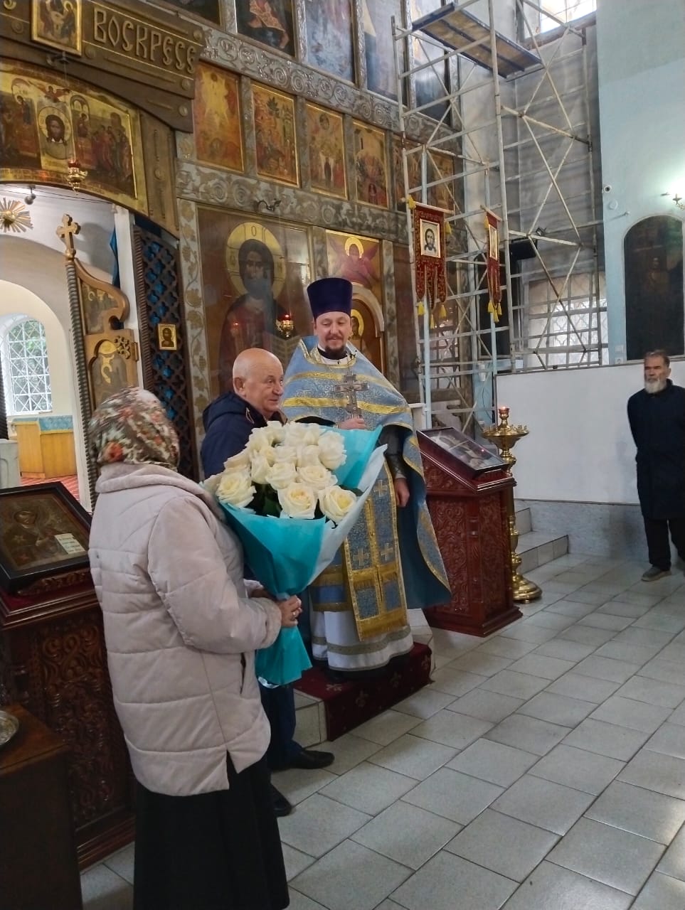 После слов проповеди, священник поздравил всех мужчин, носящих имя Роман, а прихожане в свою очередь поздравили отца Романа с праздником Покрова Пресвятой Богородицы и денем преподобного Романа Сладкопевца и пожелали «Многая и Благая лета».
