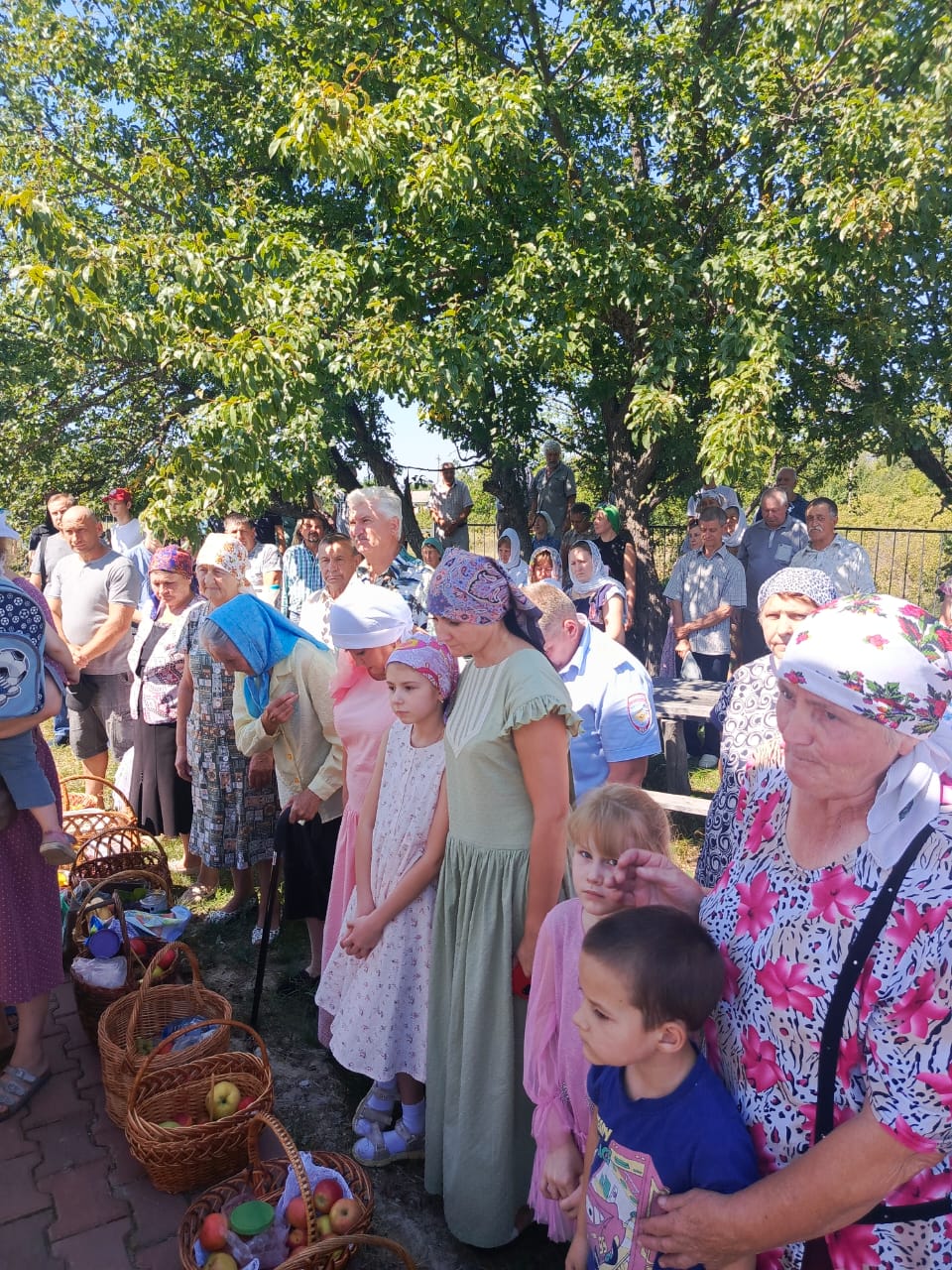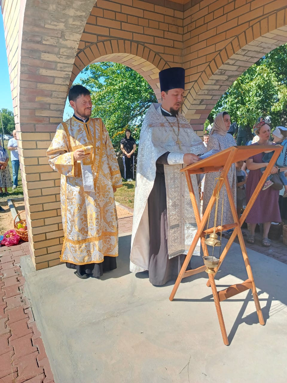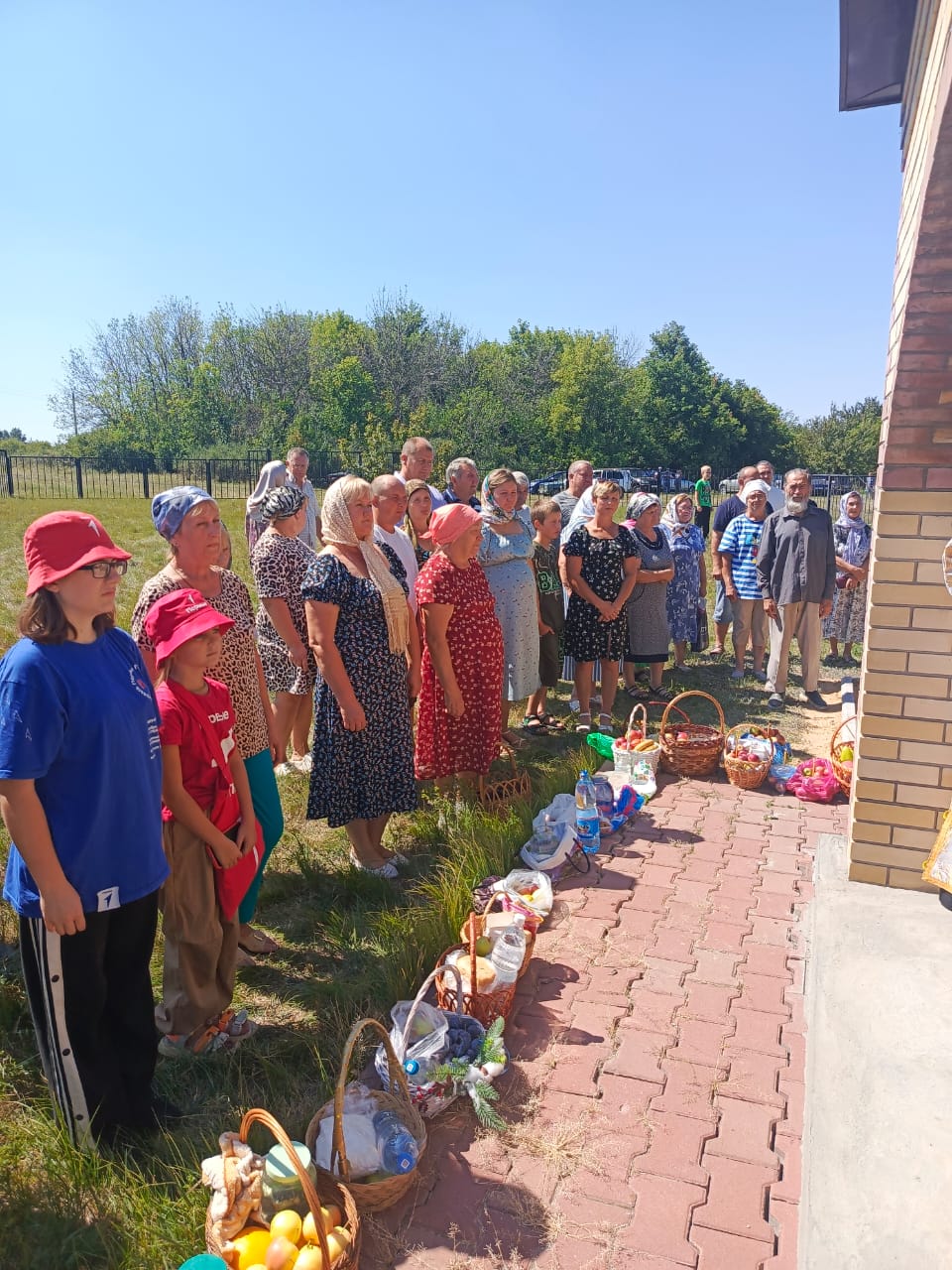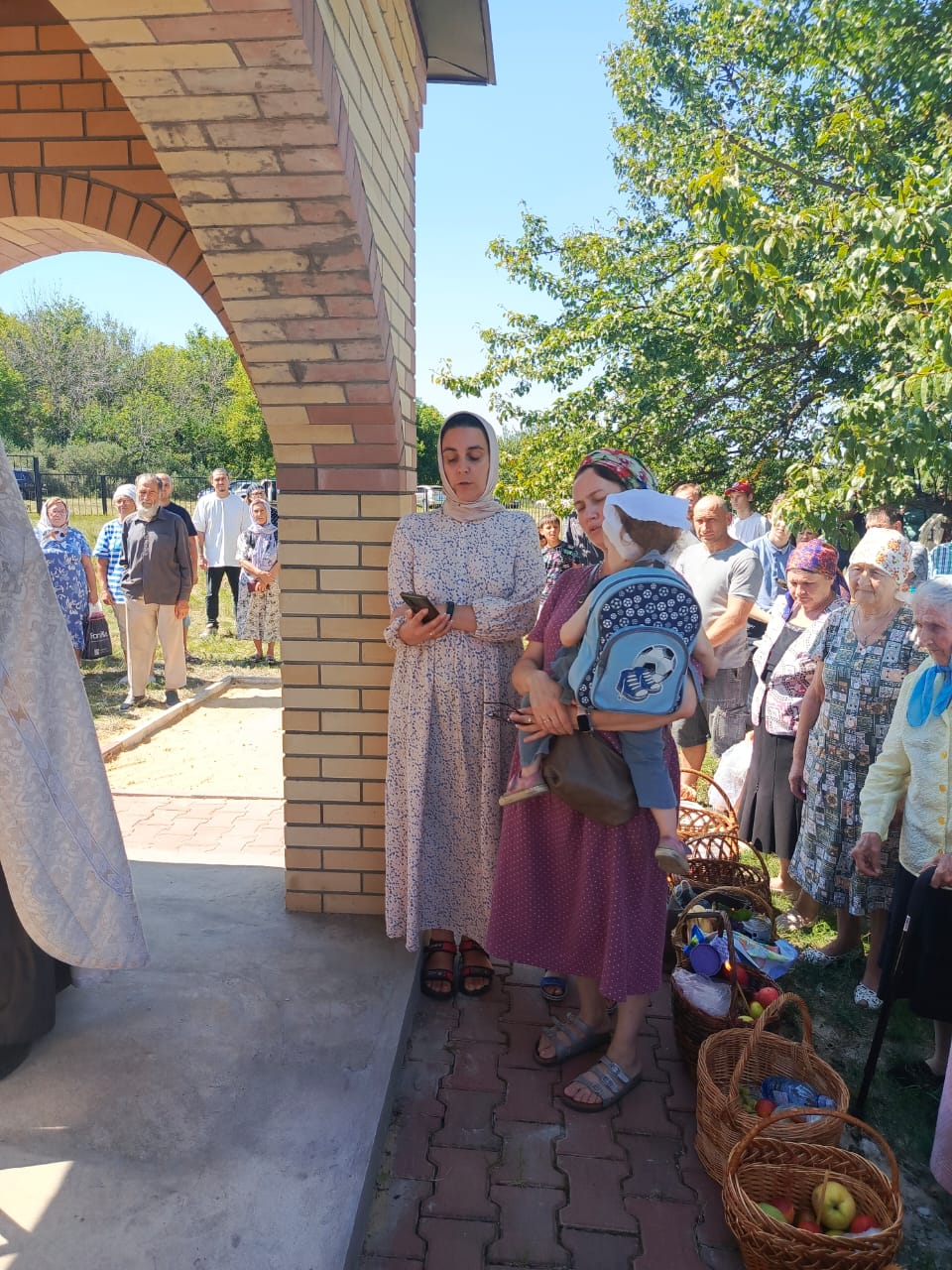 По окончании молебна отец Роман освятил плоды нового урожая и окропил их святой водой. В словах проповеди священник поздравил всех с престольным днем, рассказал о смысле праздника Преображения Господня.
