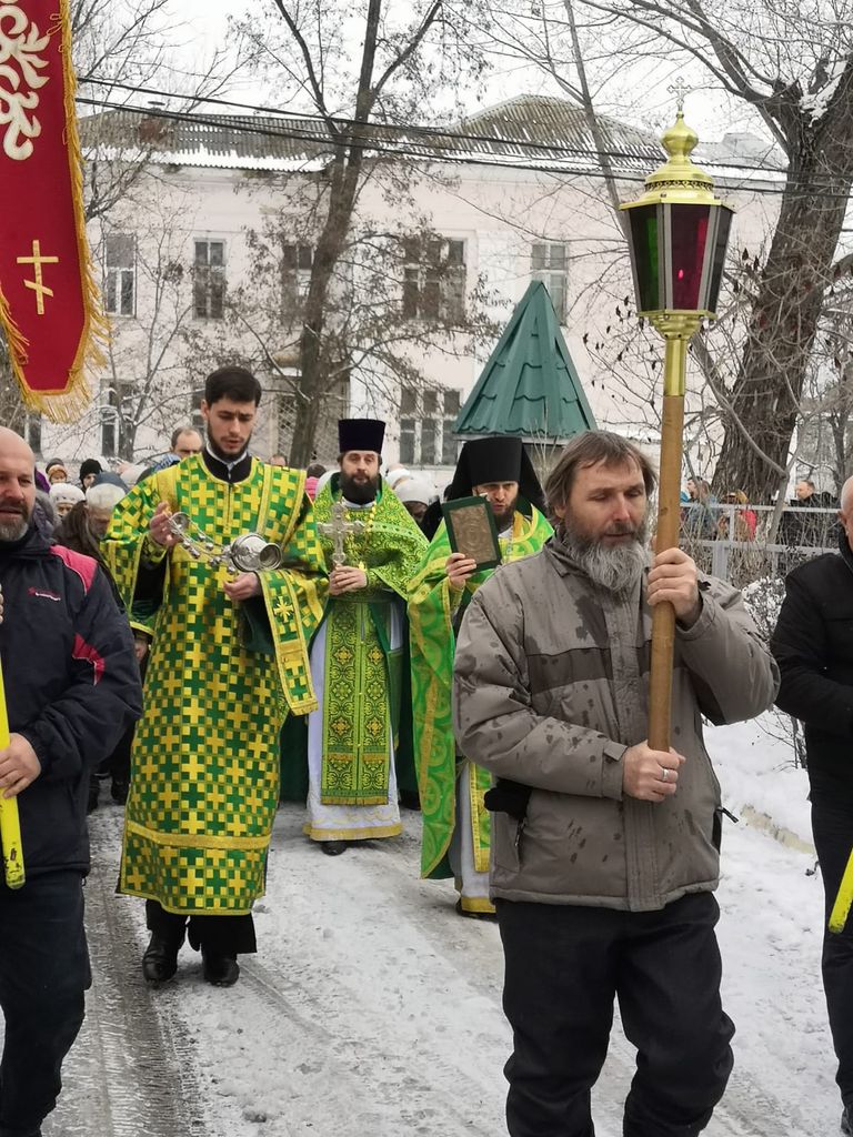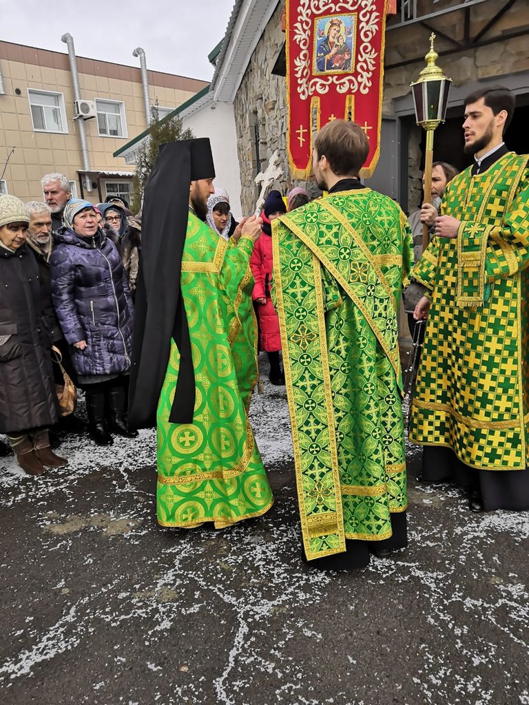 По завершении Литургии духовенство и прихожане совершили крестный ход, прославляя небесную покровительницу храма.