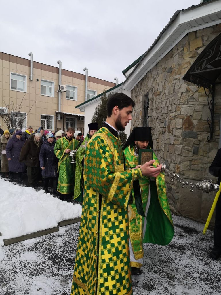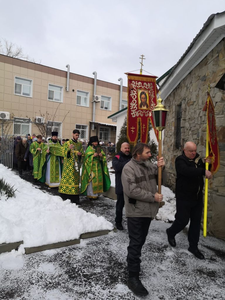 Совместную молитву совершили: благочинный приходов Александровск-Грушевского округа протоиерей Сергий Яценко, настоятель храма святой Ксении иеромонах Герман (Руденко), диакон Михаил Дубянский и иеродиакон Флавиан (Васильев).
