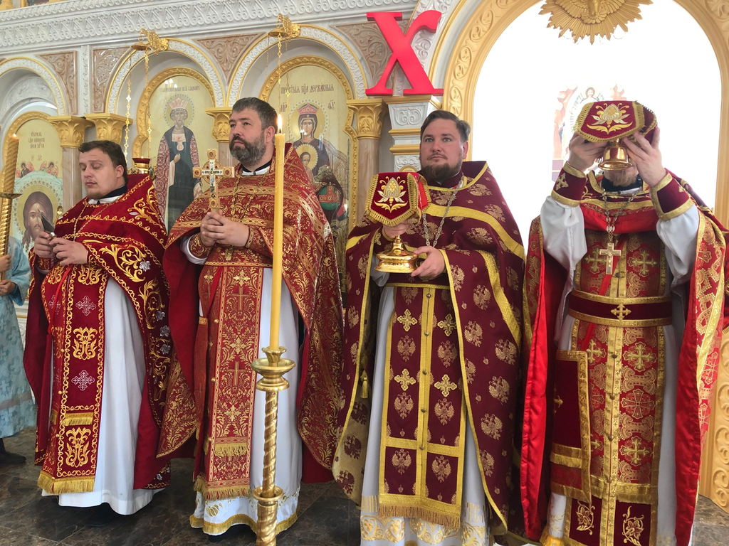 Праздничное богослужение в день памяти святых царственных страстотерпцев совершили благочинный приходов Донецкого округа иерей Владимир Татаркин, настоятель Донецкого Успенского архиерейского подворья протоиерей Глеб Гладышев, настоятель храма в честь иконы Божией матери Одигитрия пос. Таловый иерей Андрей Ковалев, настоятель Свято-Успенского храма станицы Калитвенской иерей Игорь Лосев.