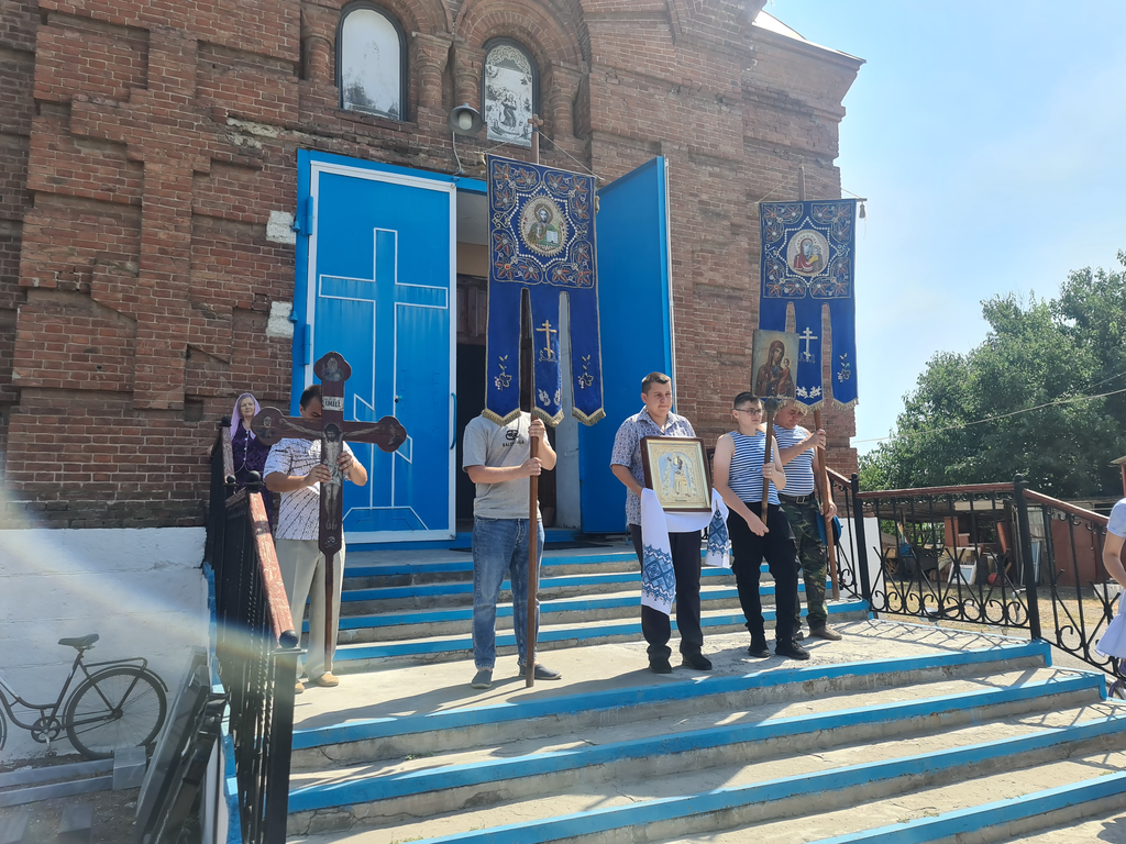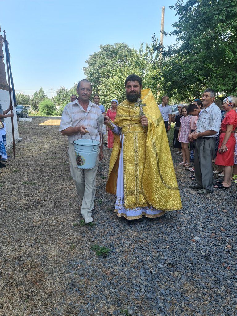 По завершении богослужения по обычаю состоялся крестный ход, после чего священник Александр обратился к молящимся с приветственным словом.