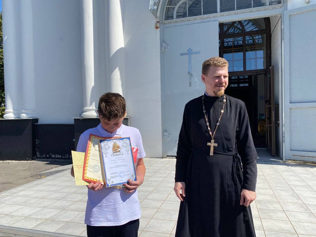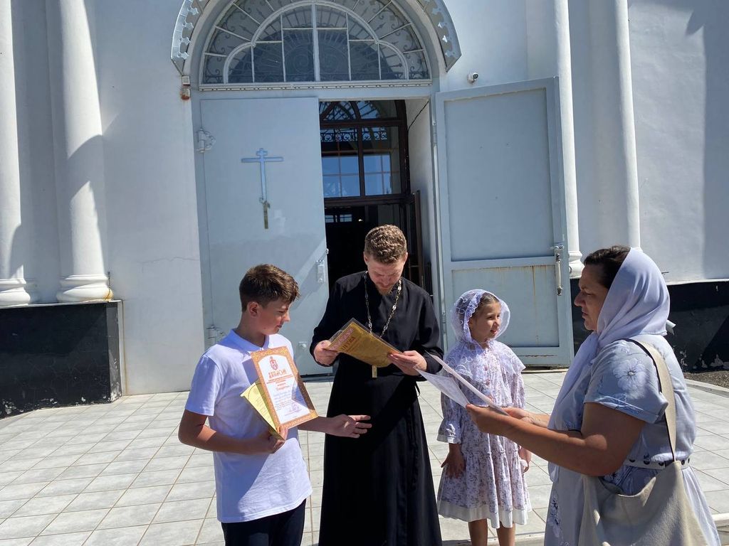 По окончании богослужения настоятель храма вручил грамоты и сертификаты выпускникам воскресной школы «Азы православия».