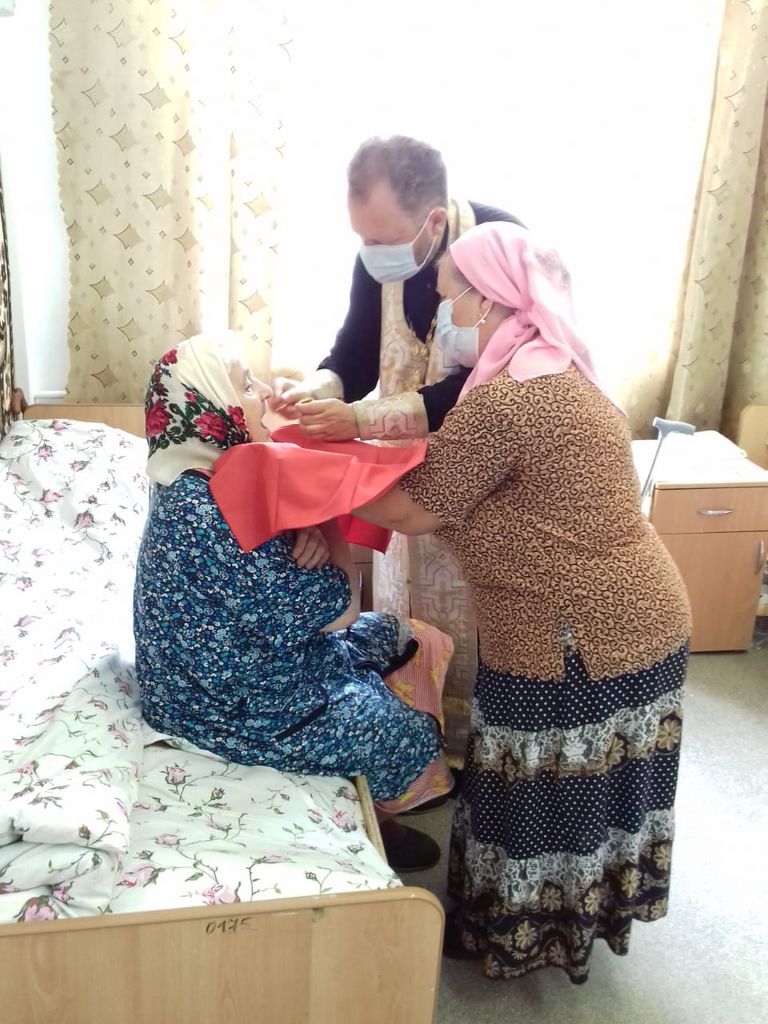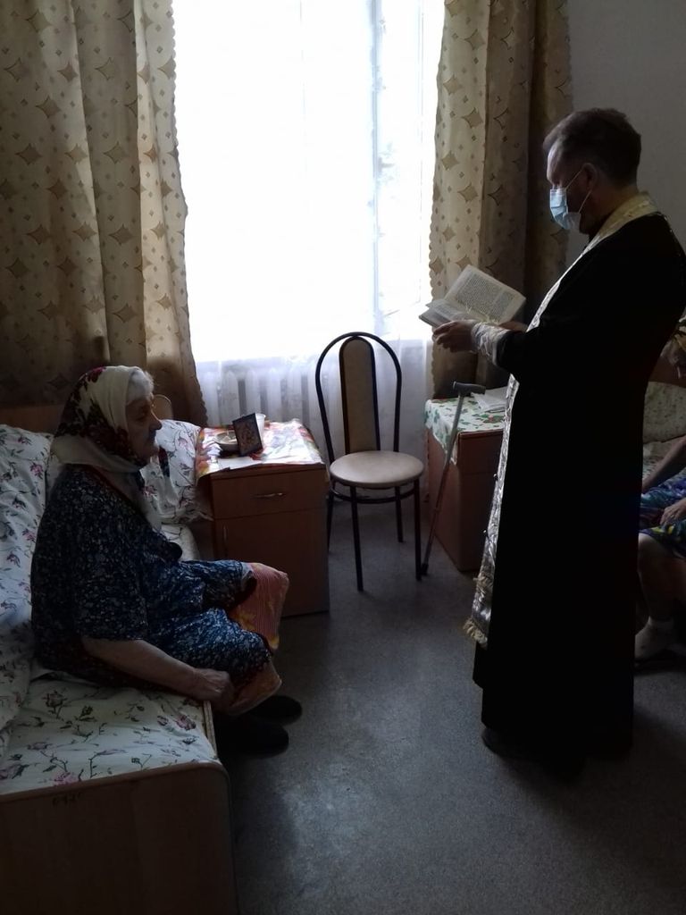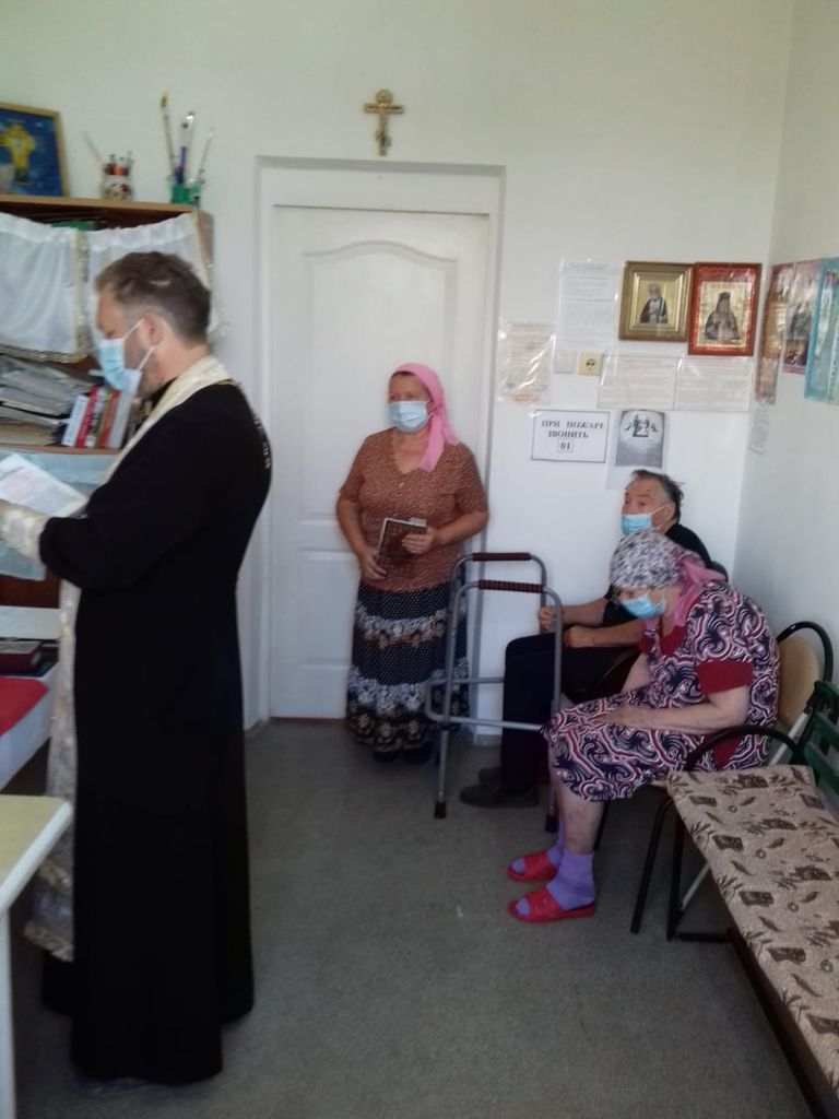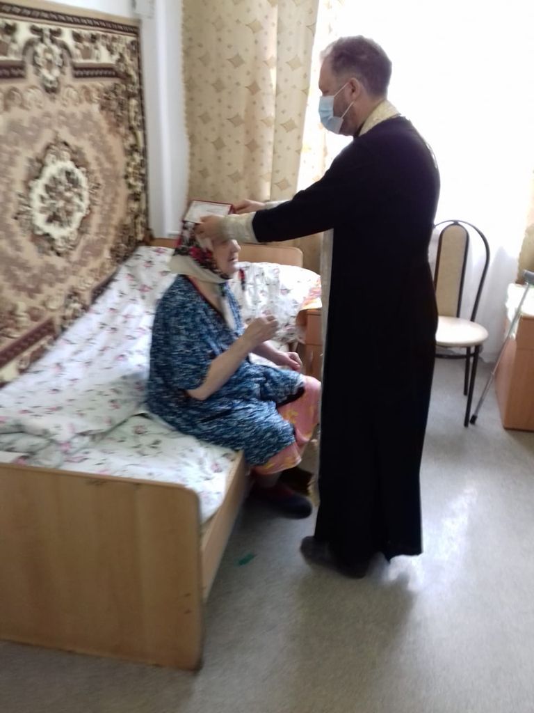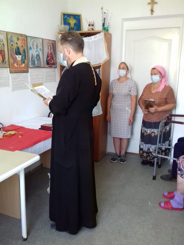 Священник совершил таинства Исповеди и Причастия, а также молитву о здравии постояльцев и работников учреждения.