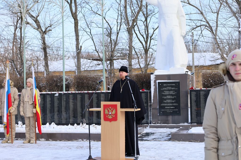 13 февраля отмечается 80-я годовщина освобождения Новошахтинска от немецко-фашистских захватчиков. В митинге, посвященном 80-летию освобождения Новошахтинска принял участие и сказал приветственное слово протоиерей Роман Амплеев, благочинный приходов Новошахтинского округа, руководитель отдела Шахтинской епархии по приграничному сотрудничеству.