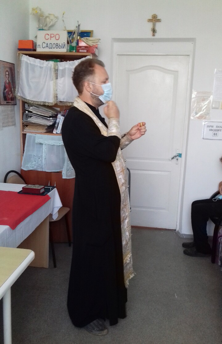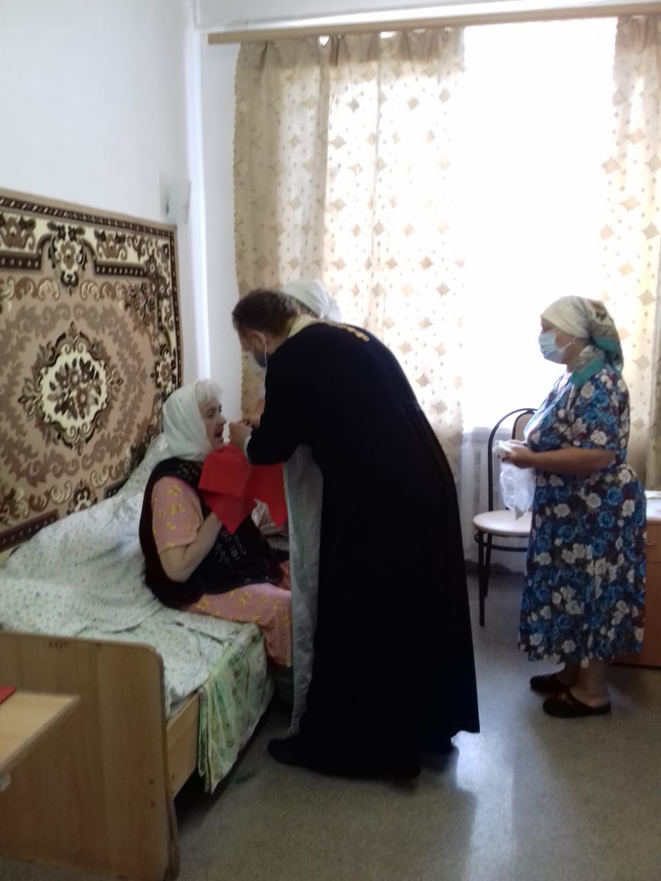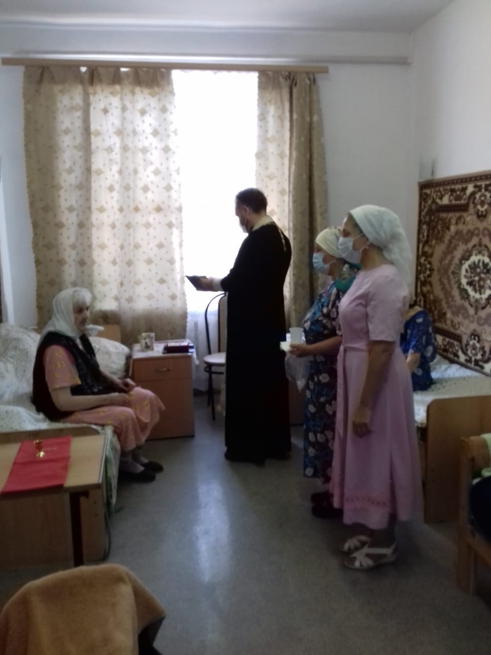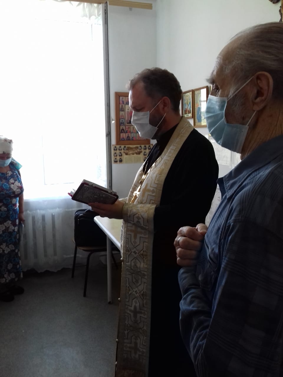 Священник совершил таинства Исповеди и Причастия, а также молитву о здравии постояльцев и работников учреждения.
