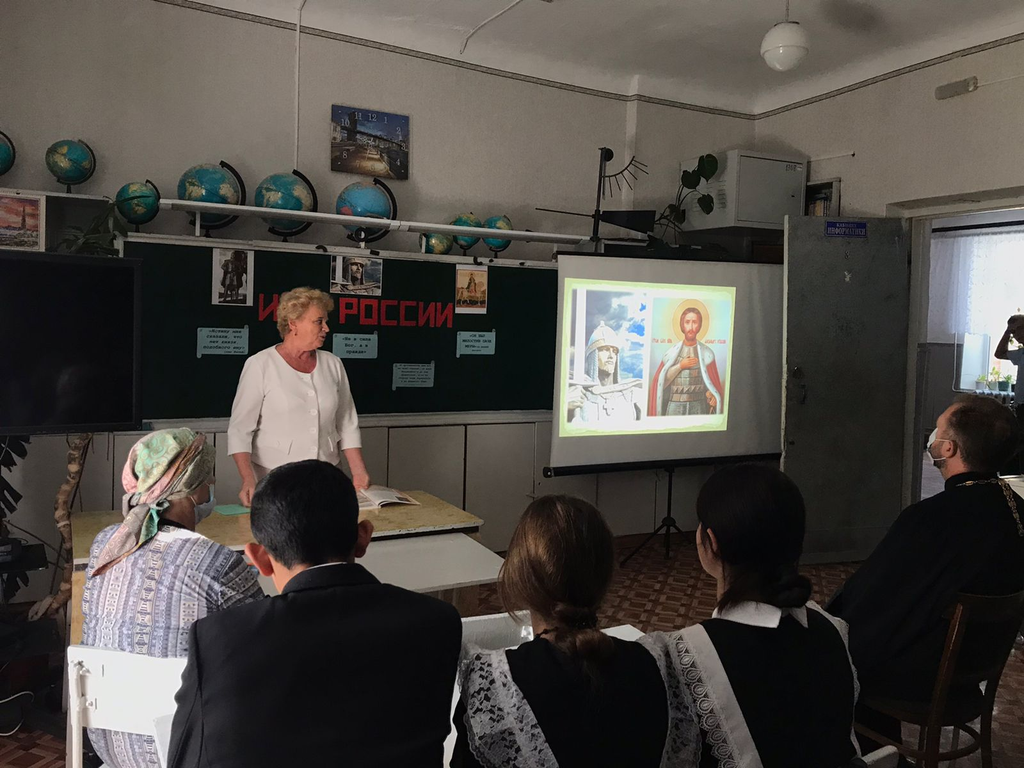 В Отрадненской средней школе Багаевского района прошел открытый урок ОПК, посвященный 800-летию святого благоверного князя Александра Невского. Занятие было построено не совсем традиционно. На нем присутствовали не только учащиеся и преподаватели учреждения, но и желанный в школе гость – настоятель храма Серафима Саровского пос. Отрадный протоиерей Роман Мясников.