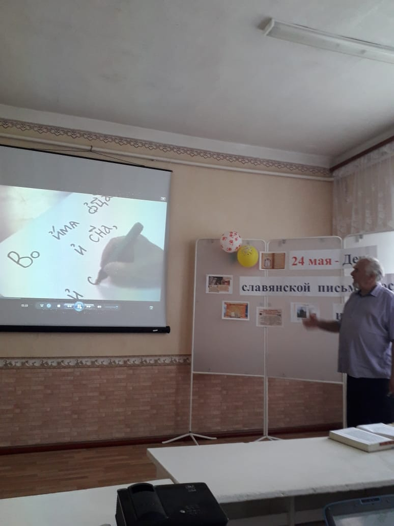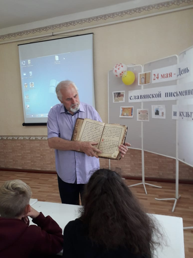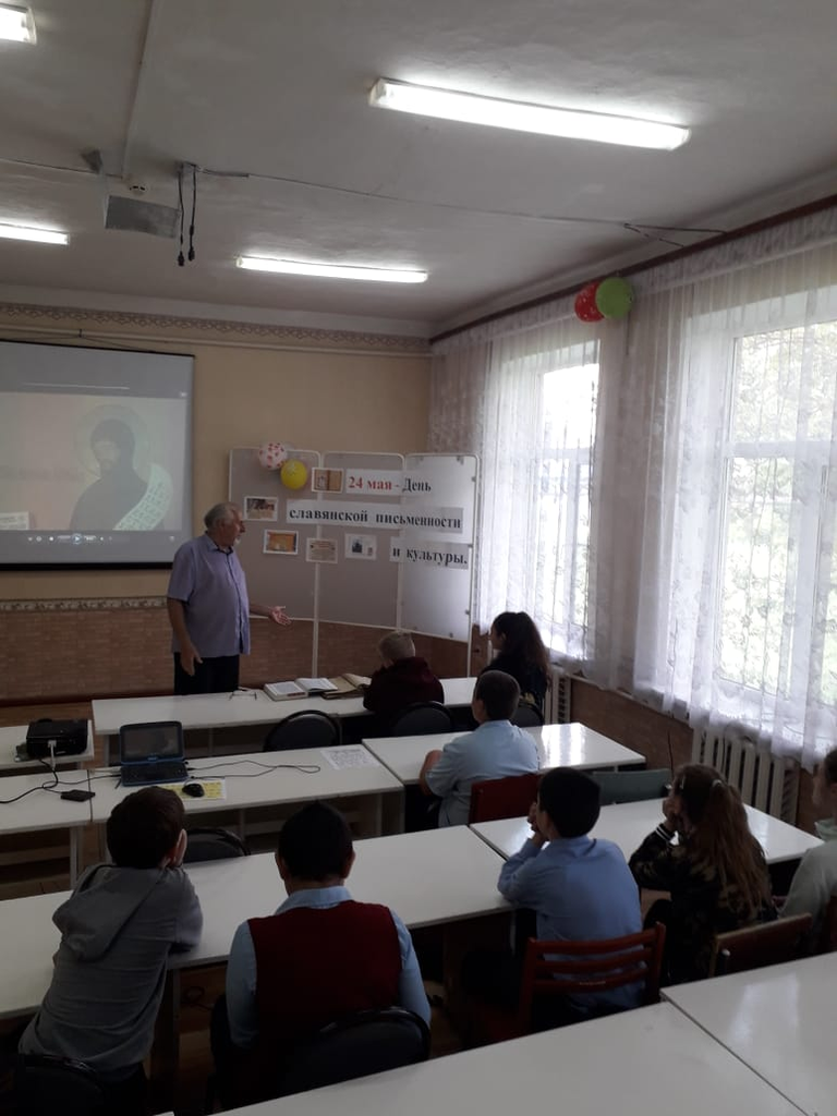 Руководитель воскресной группы при храме апостола и евангелиста Иоанна Богослова поздравил с праздником славянской письменности и культуры учащихся Первомайской школы