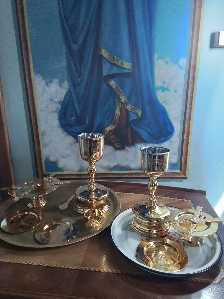Приход Вознесения Господня г. Шахты собрал пожертвования, на которые были приобретены два евхаристических набора с потирами разного объёма и подарены Покровскому монастырю.