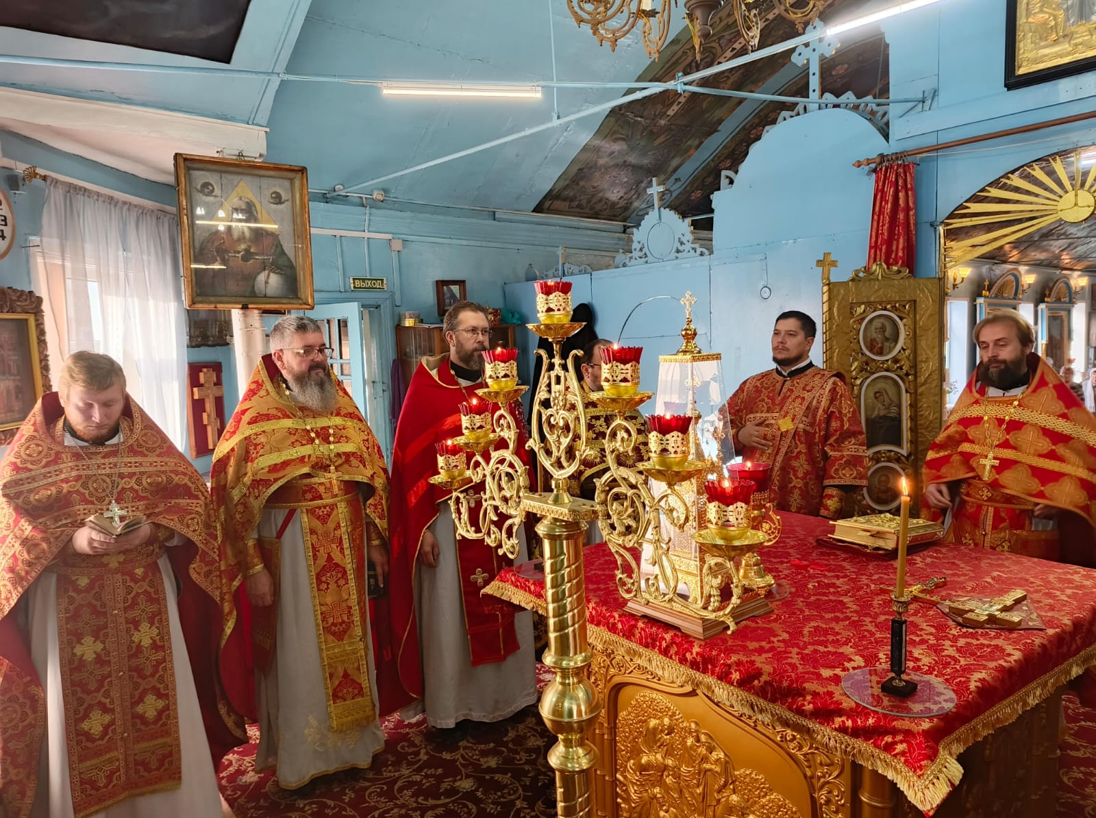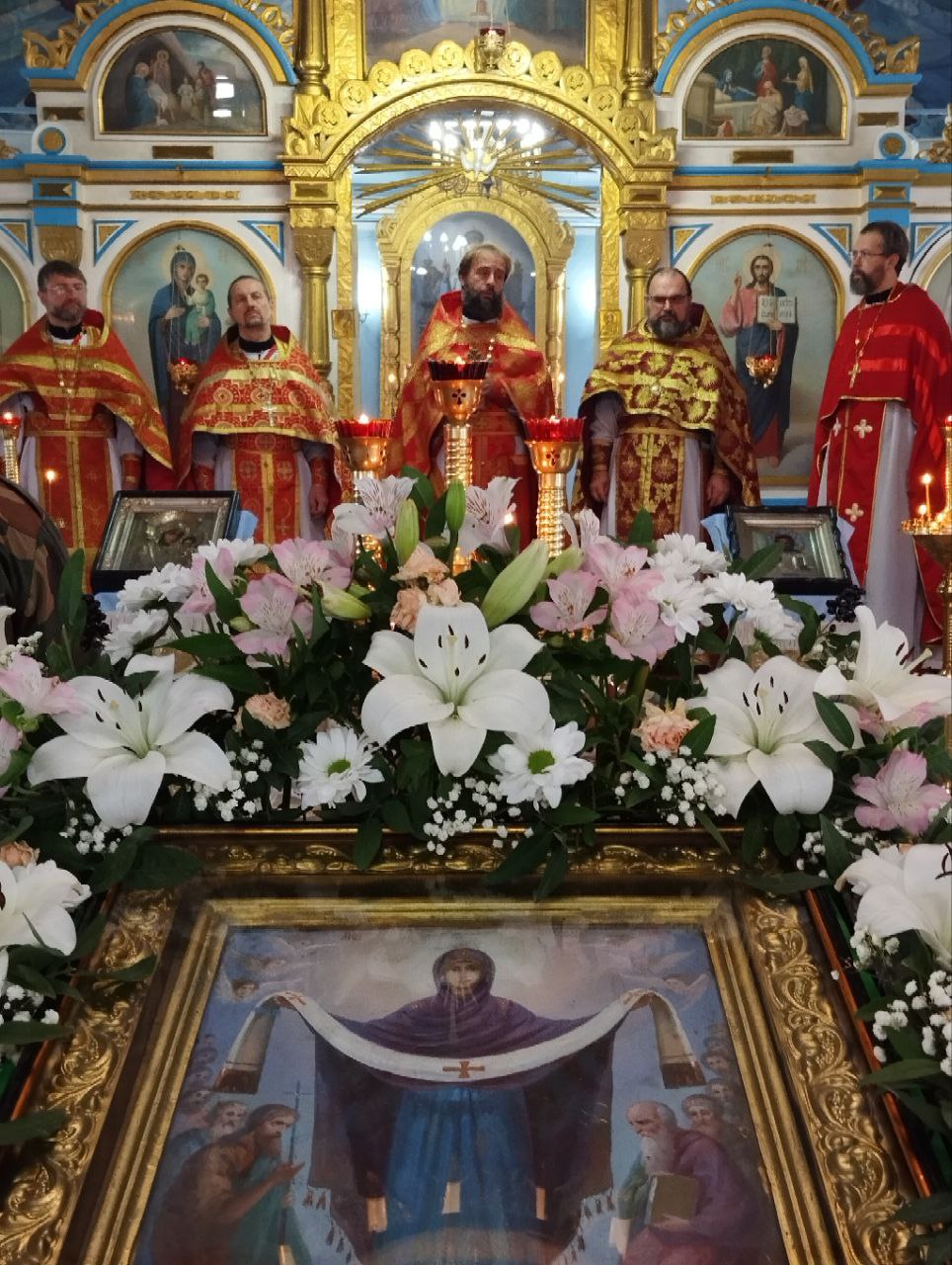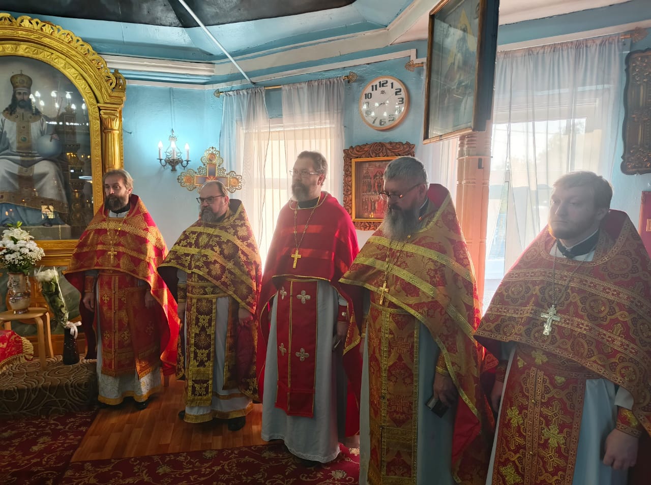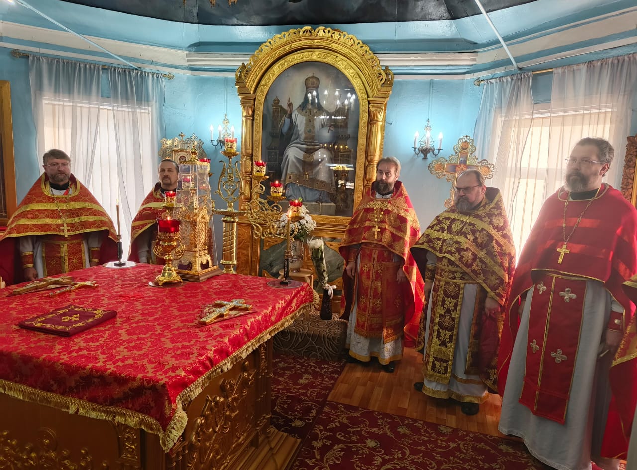 Соборным служением отметили 50-летний юбилей настоятеля Покровского прихода г. Новошахтинска протоиерея Василия Хадыкина. Возглавил служение Божественной литургии благочинный приходов Нижнедонского округа протоиерей Сергий Яценко, которому сослужили: настоятель Покровского храма г. Новошахтинска протоиерей Василий Хадыкин, настоятель Алексеевского епархиального подворья протоиерей Михаил Борисенко, настоятель Успенского прихода села Алексеевка иеромонах Олег (Васильченко), настоятель Свято-Троицкого храма г. Шахты иерей Виталий Крендясов, настоятель Елисаветинского храма г. Гуково иерей Георгий Русинов, настоятель Захариевского храма г. Новошахтинска иерей Сергий Артюшенко, клирик Покровского кафедрального собора иерей Андрей Трошин, клирик Державного храма г. Белая Калитва (Волгодонская епархия) диакон Антоний Гулиев.