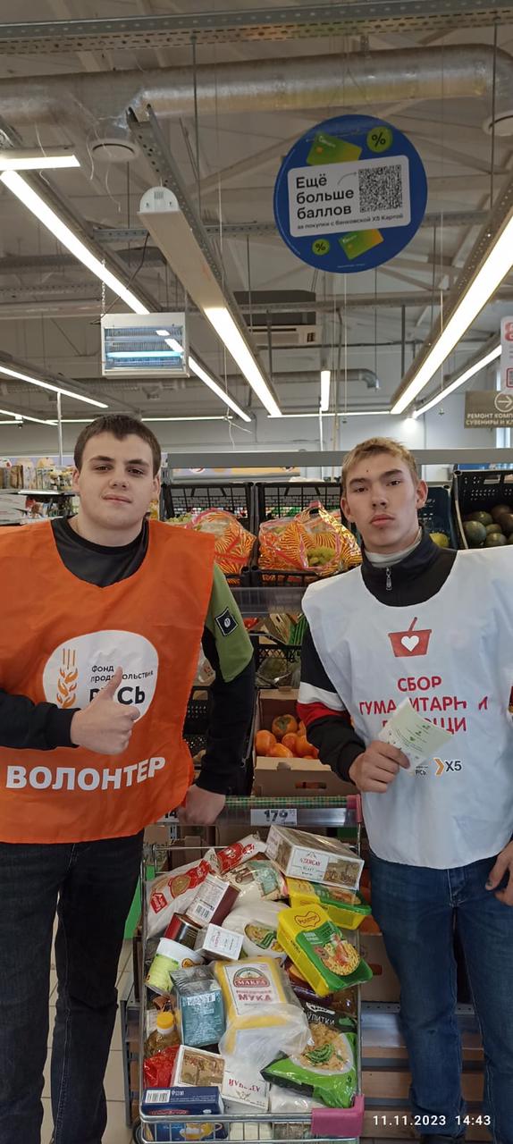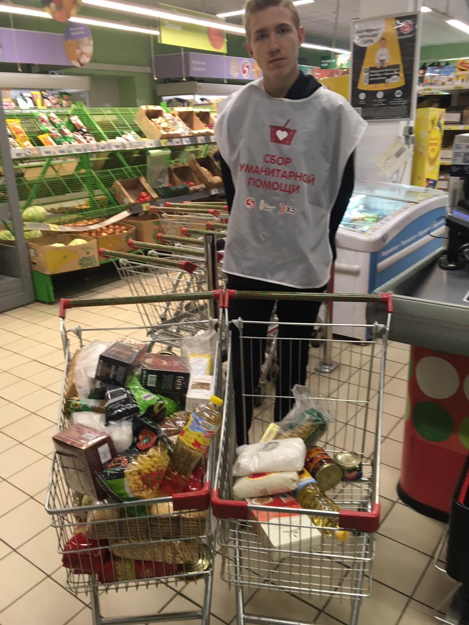 Волонтеры, добровольцы, сестричество и студенты «Донецкого промышленно-гуманитарного техникума» провели сбор продуктов для нуждающихся семей, пенсионеров в супермаркетах сети «Пятерочка» города Донецка.