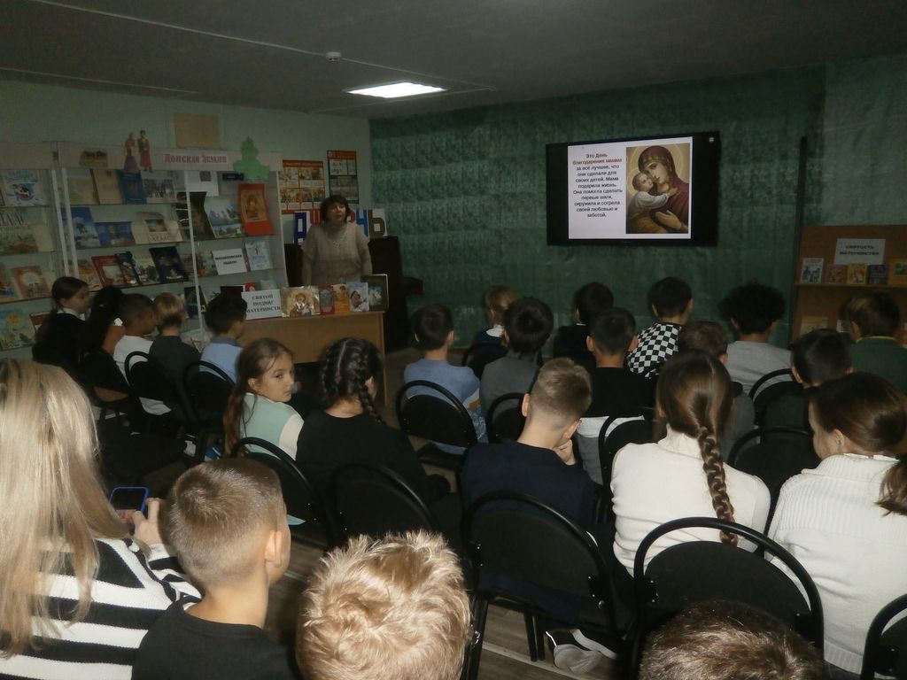 23 ноября 2023 года в соответствии с совместным планом работы по духовно-нравственному и патриотическому воспитанию школьников на базе клуба духовной культуры «Веков связующая нить» прошел открытый урок «ОРКСЭ» для учащихся 4 классов «Святой подвиг материнства», посвященный Дню матери, который провела преподаватель, помощник по религиозному образованию и катехизации Донецкого округа Фартанова Р.И.