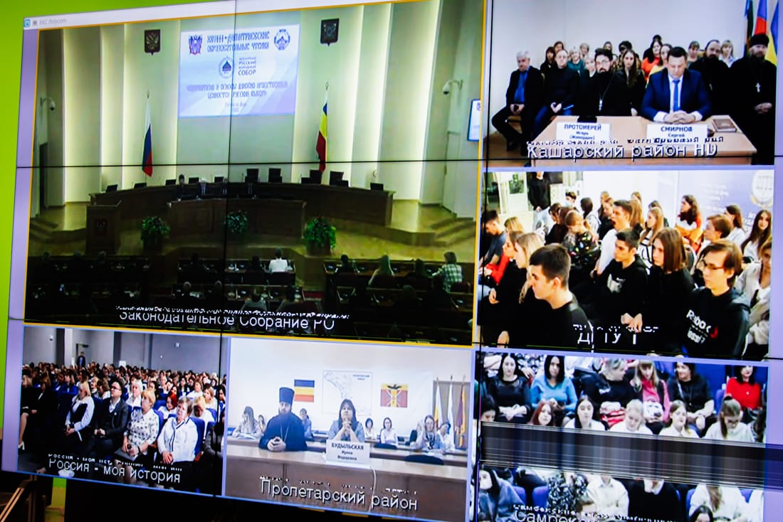 К трансляции встречи подключились также представители Правительства РО, Законодательного Собрания региона, министерств, ведомств, педагогическая общественность и духовенство Донской митрополии. Всего в мероприятии приняло участие более 2 500 человек в режиме видеоконференцсвязи, организованного в этом году при непосредственном участии Правительства Ростовской области.