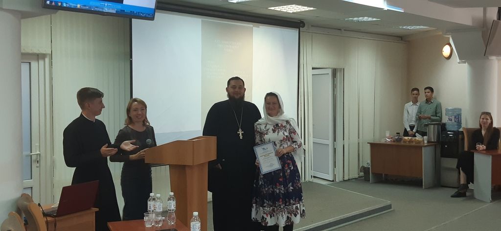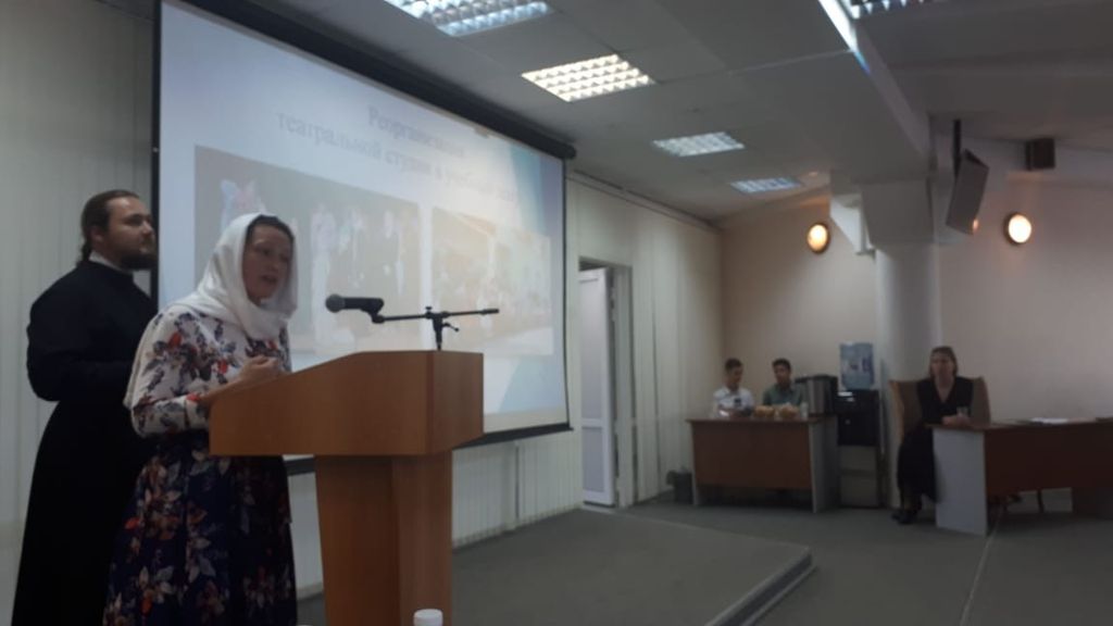 Куратор «Учебного театра «Воскресение» Андрей Алексеевич Яненко представил слушателям презентацию о проекте, поддержанном Фондом президентских грантов. Его выступление нашло живой отклик среди слушателей из разных концов обширной Донской митрополии. Многие педагоги заинтересовались работой Учебного театра и предложили провести совместные мероприятия.