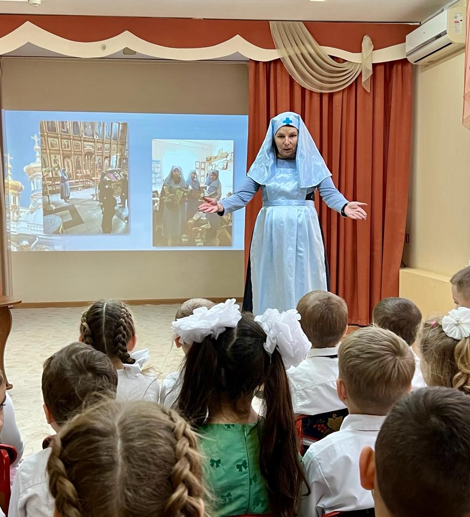 13 ноября 2023 года в день памяти святых апостолов от 70-ти Стахия, Амплия, Урвана, Наркисса, Апеллия (Апеллеса) и Аристовула замечательное мероприятие состоялось у старших воспитанников детского сада. К ним в гости пришла по благословению протоиерея Романа Амплеева, настоятеля храма в честь Донской иконы Божией Матери города Новошахтинска, благочинного приходов Новошахтинского округа, председателя отдела по взаимоотношениям Церкви с обществом Шахтинский епархии Саханина Инна Викторовна – сестра милосердия, куратор гуманитарного центра «От Сердца к сердцу» Донского храма г. Новошахтинска.