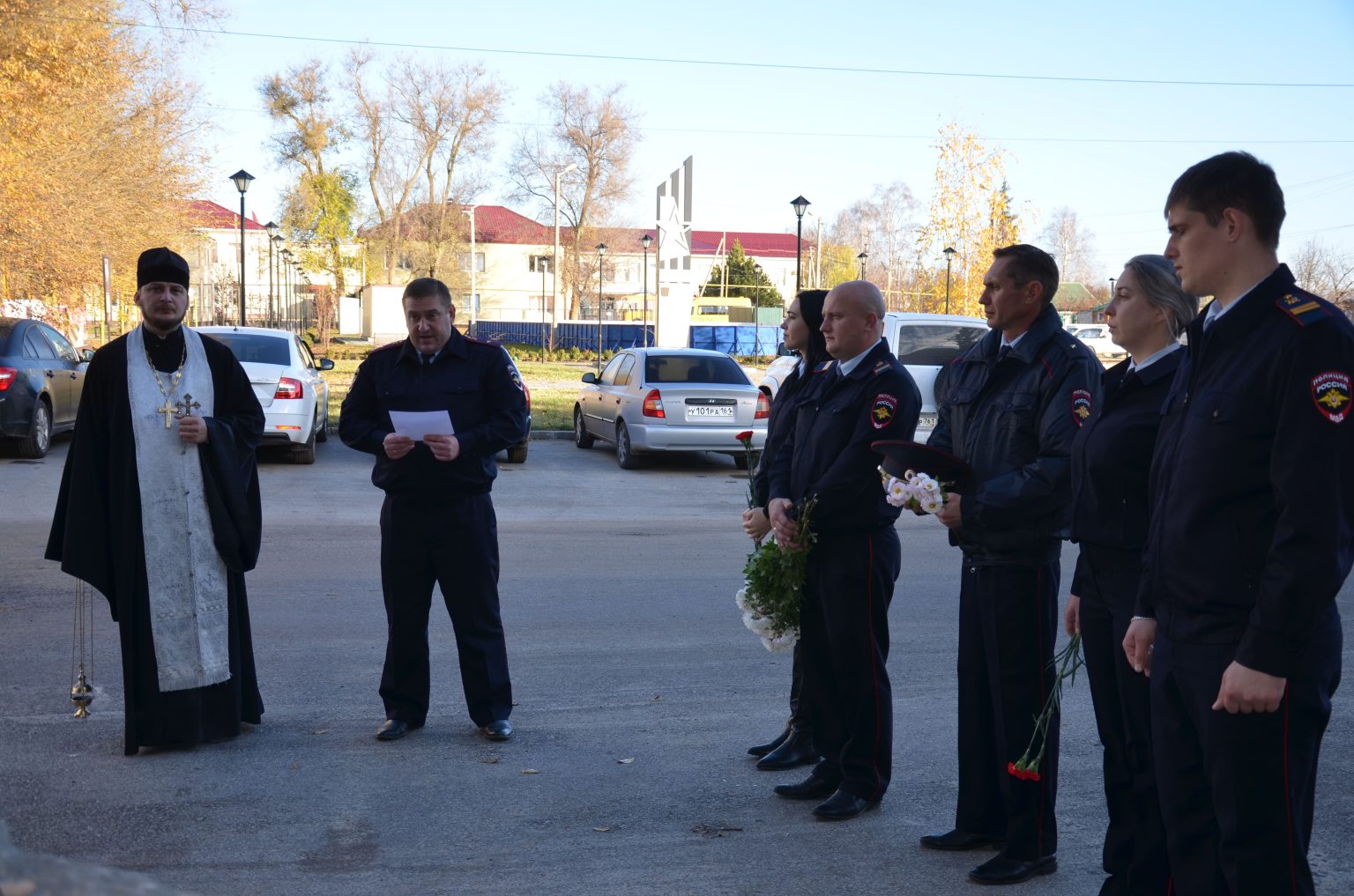 Настоятель храма Иоанна Предтечи станицы Боковской иерей Александр Левчик совершил заупокойную литию у памятного знака, посвящённого сотрудникам МВД Боковского района погибшим при выполнении служебных обязанностей.
