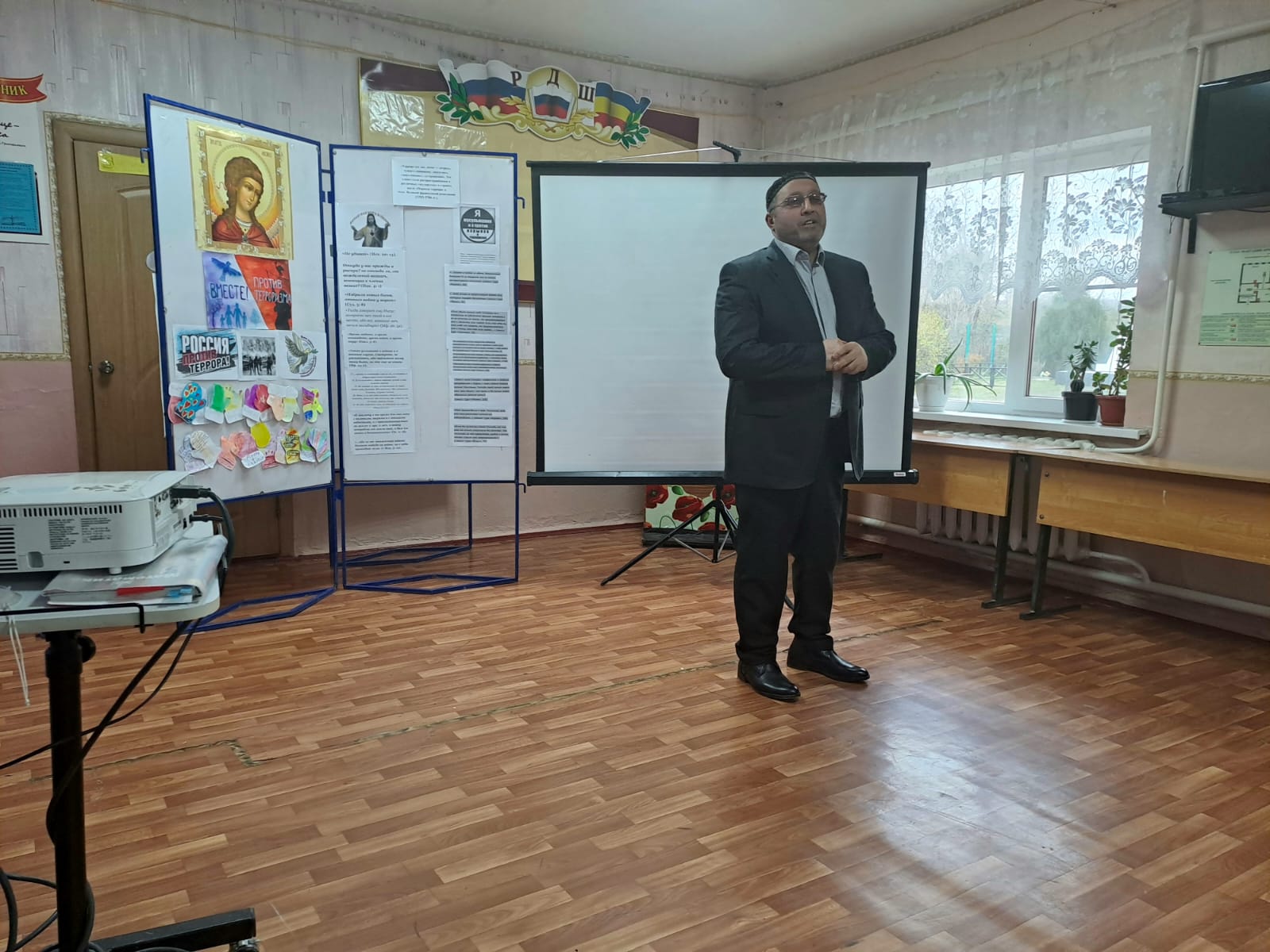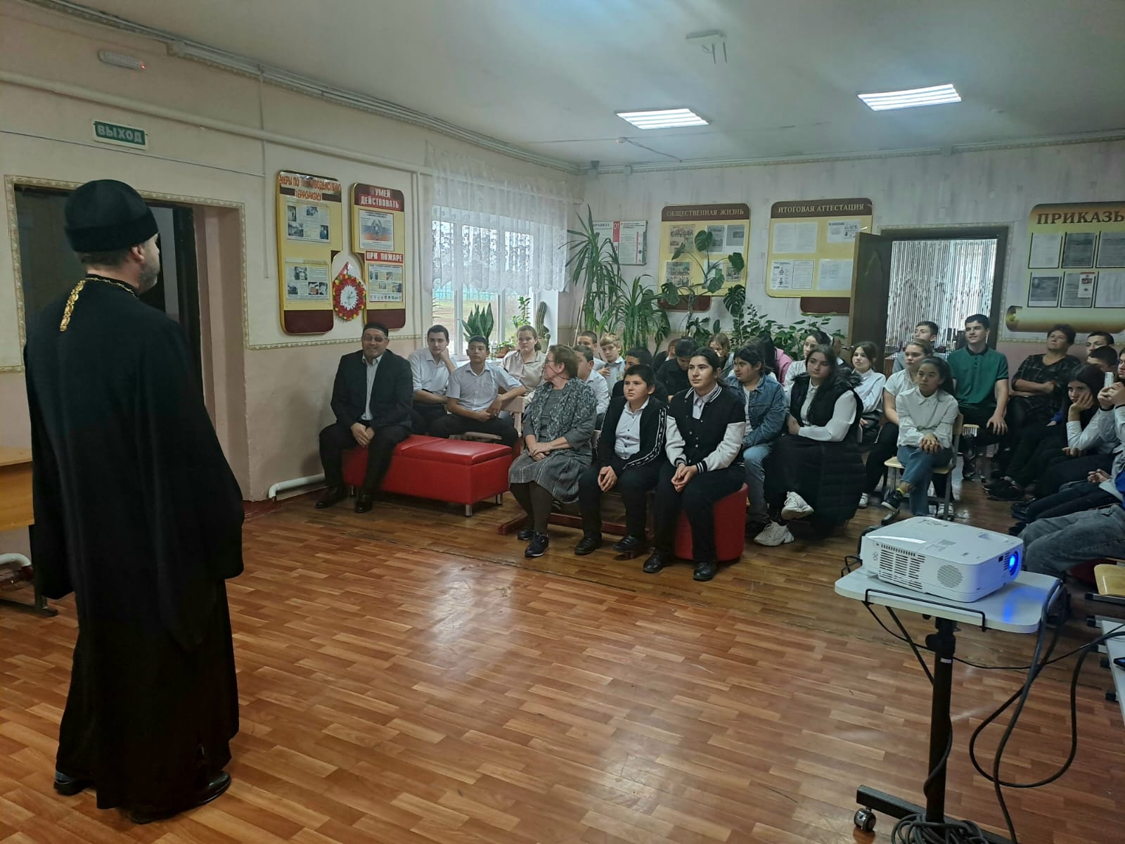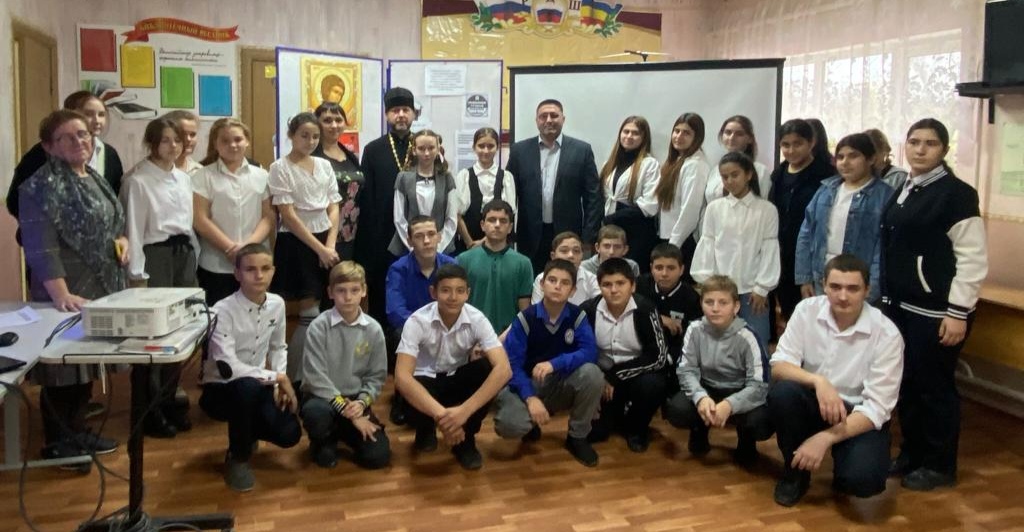 В основной школе х. Усьман Багаевского района прошла встреча учащихся 6-9 классов с представителями религиозных организаций: настоятелем Прихода святого великомученика Георгия Победоносца в х. Усьман протоиереем Романом Мясниковым и муллой мусульманской общины х. Усьман Дарвишевым Нурадином. Тема встречи «Терроризм – угроза человечеству».