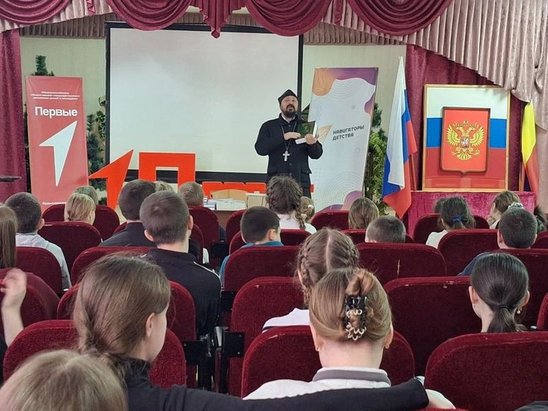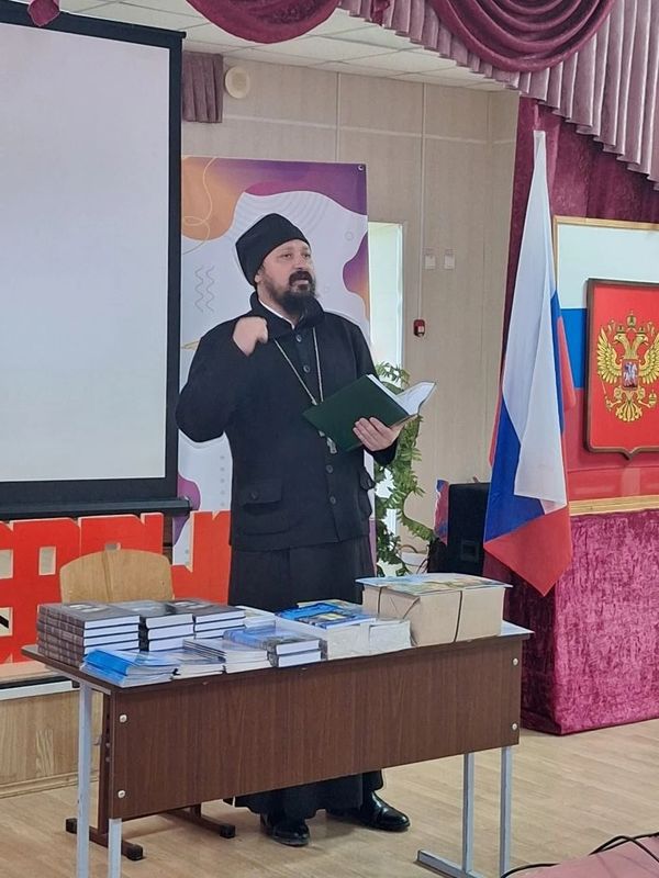 Ко Дню православной книги настоятель храма в честь Архангела Михаила иерей Иоанн Агаев посетил Первомайскую школу и провёл встречу с учащимися и учителями.
